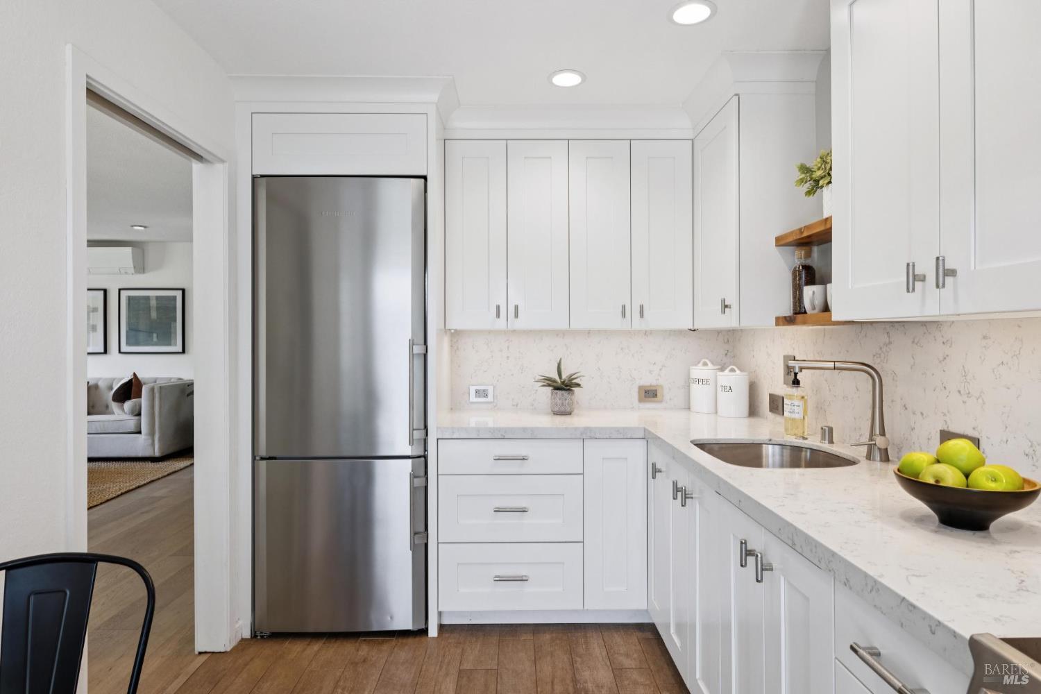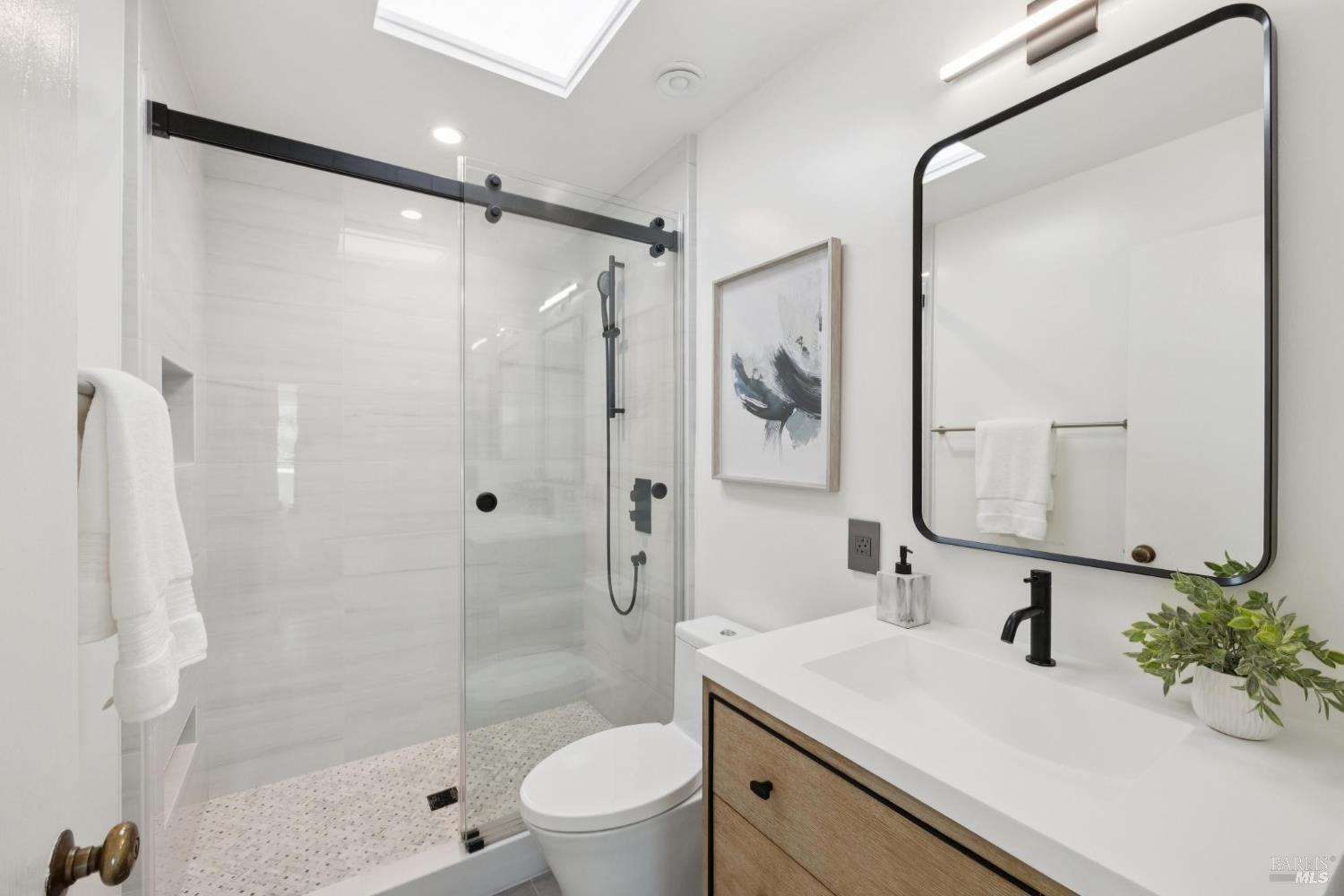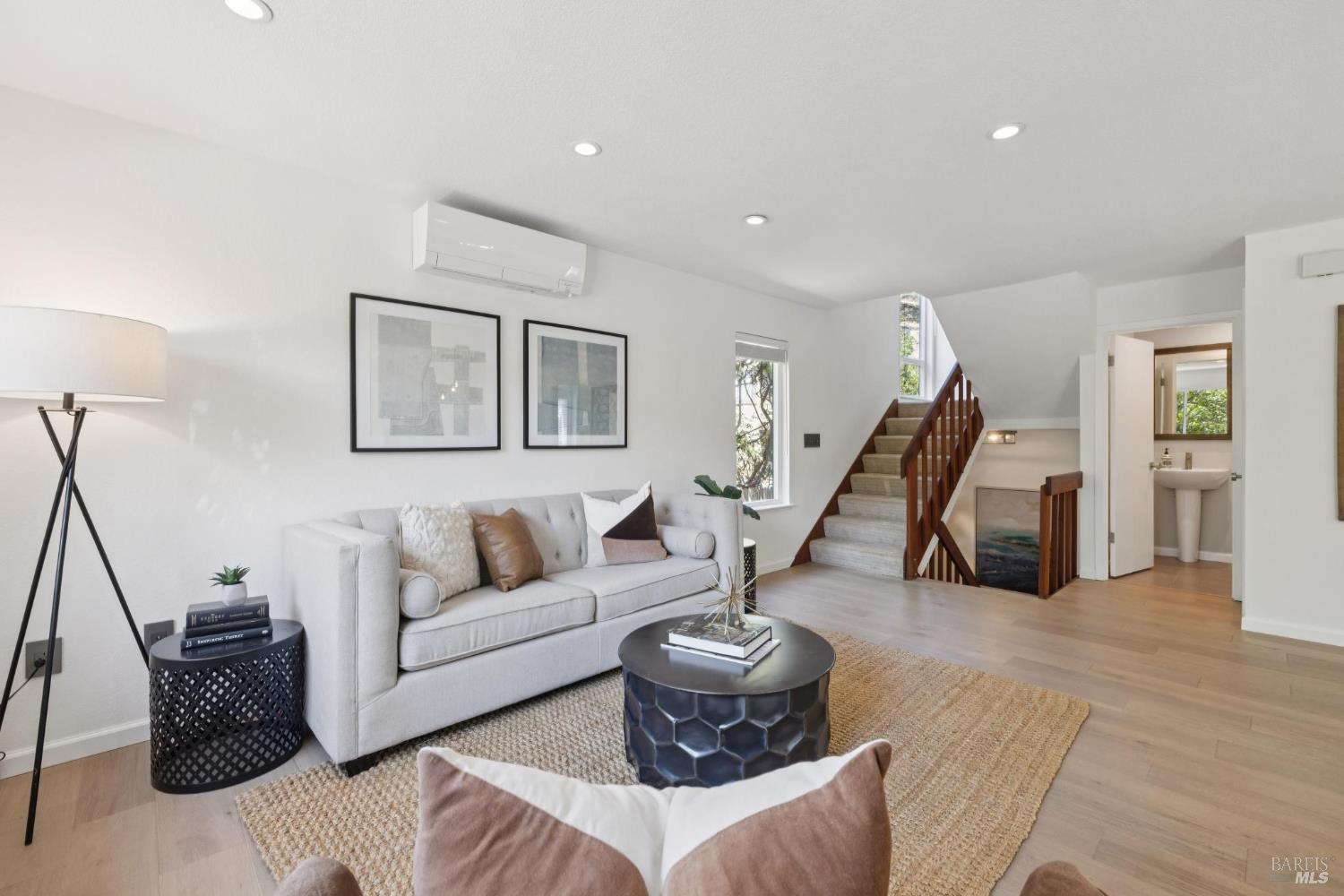 Extensively remodeled and absolutely turn-key 2 bedroom, 2.5 bathroom townhome in a prime central Greenbrae location! Featuring more than $200,000 in recent upgrades, this home exudes elegance and showcases superior design choices. With high-end stainless appliances including a Bosch range/oven, a Liebherr refrigerator, and a Miele dishwasher, you will delight in creating meals in this culinary paradise! All 3 bathrooms have been beautifully designed and appointed, with a half-bath on the main level, an upstairs hallway full bath, and another full bath en-suite in the Primary. Enjoy perfect interior climate with mini-splits in the main living room and each bedroom. There is a large landing space at the top of the stairs; perfect for a home office set-up or cozy reading nook. Convenient upstairs laundry closet with hook-ups located just off of the landing area. Relish in the view of Marin's beloved Mt. Tam from BOTH bedrooms! A perfectly situated deck off of the living area provides a lovely place to dine, relax, or entertain outdoors. An attached, two-car garage with storage space, workshop area, and interior access round out this terrific property. Prime location near Bon Air Shopping Center, hiking trails, the SMART train and the ferry to SF. Don't miss this special property!