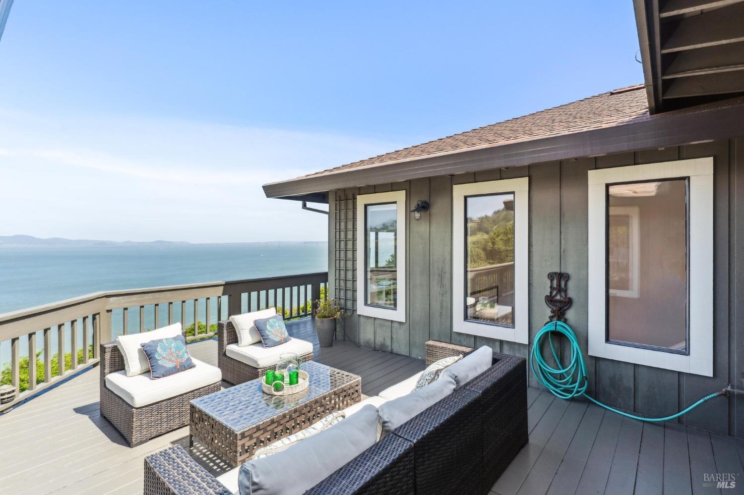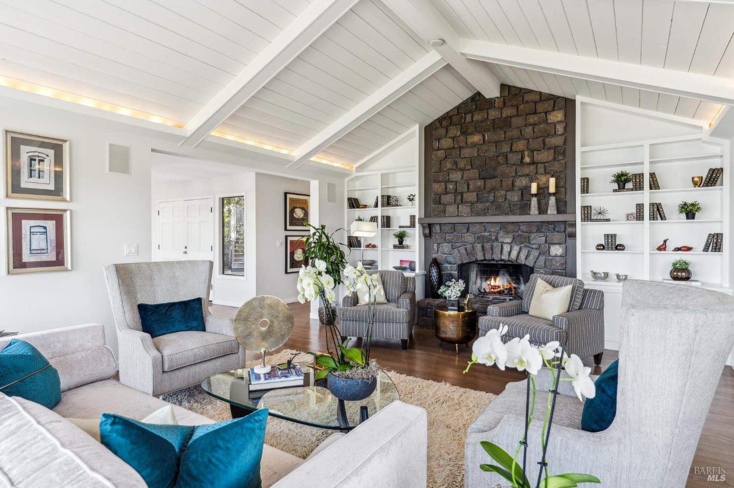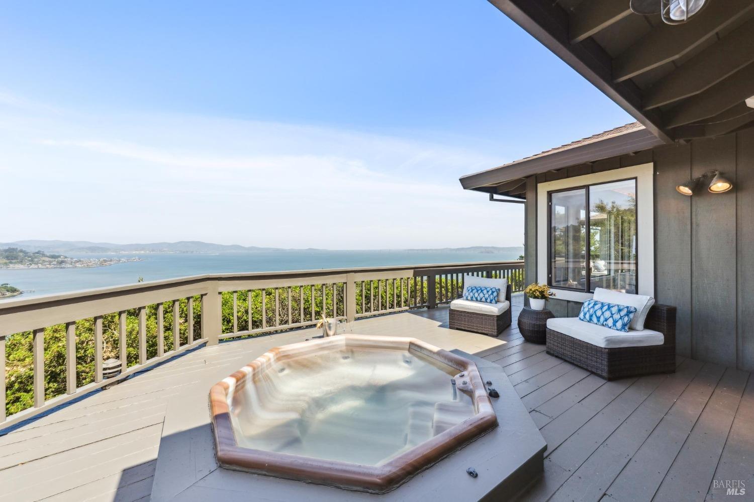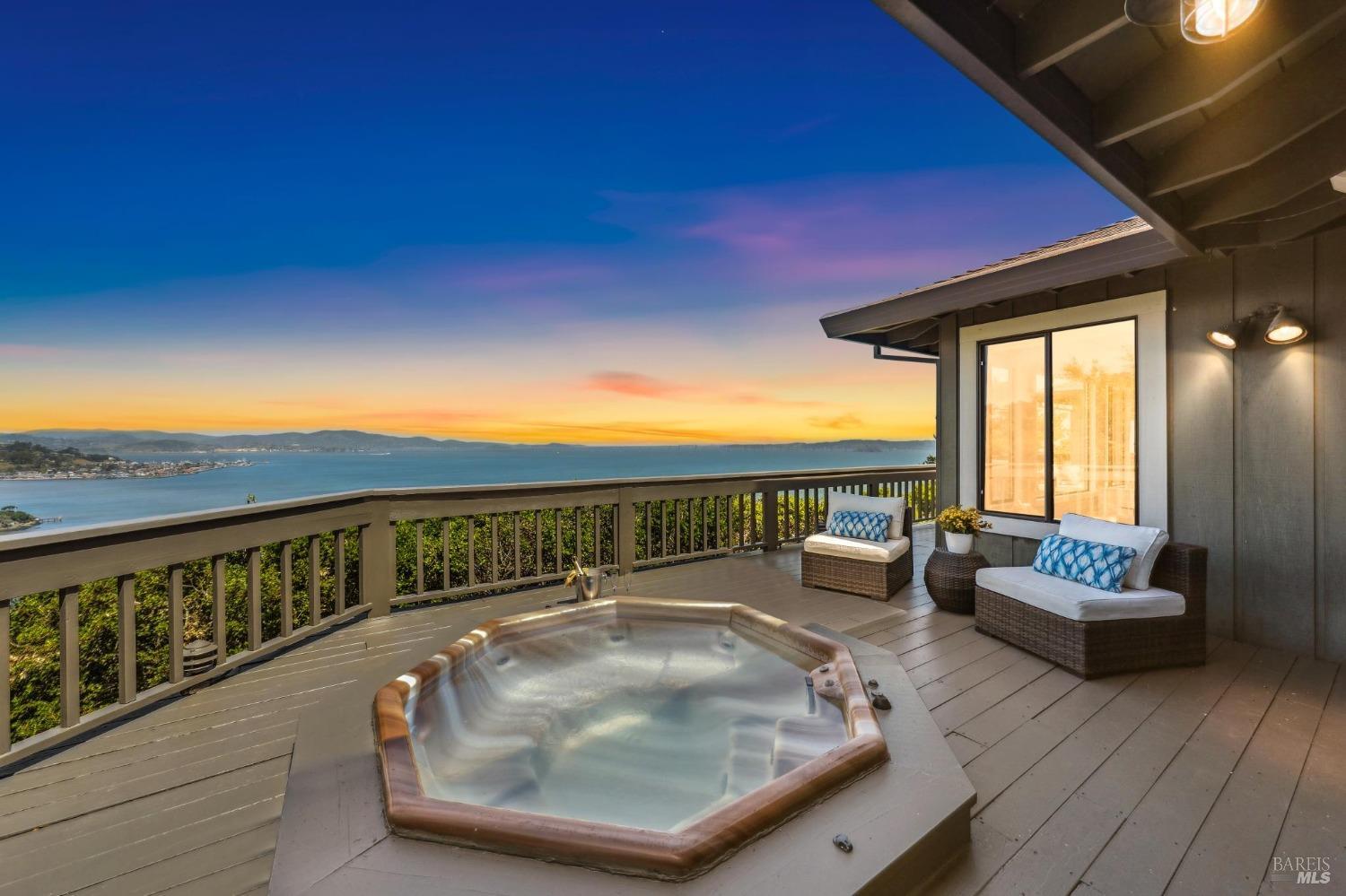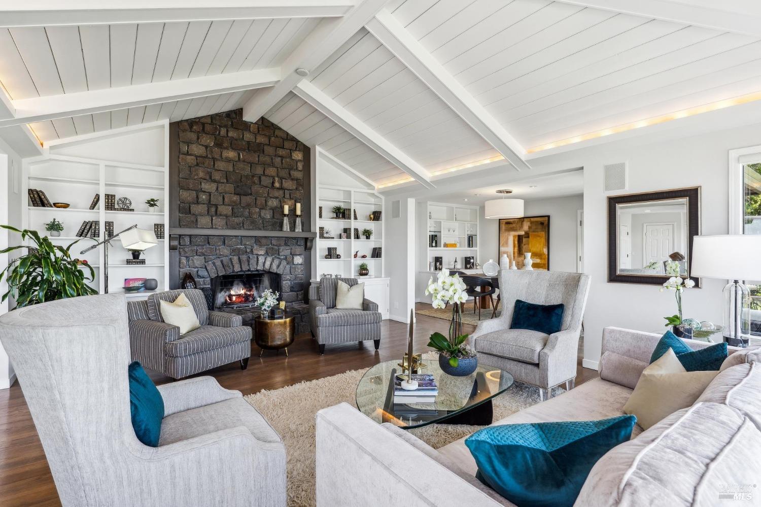 NEW PRICE! Experience luxurious coastal living in this stunning 4-bedroom, 3.5-bath home with mesmerizing water views. Every detail of this home has been thoughtfully curated to offer a lifestyle of comfort, sophistication & breathtaking beauty. The combined kitchen/family room offers vaulted ceilings w/ cove lighting, exotic fish aquarium, built-in library & media cabinetry, gas river-rock fireplace & sliding glass doors leading to the entry deck. Kitchen has 2 new stainless-steel ovens, new refrigerator, Viking gas stove w/ range hood and island w/ bar seating for casual dining. Living room & formal dining area open to a generous deck for indoor/outdoor flow. A stone gas fireplace in the living room provides cozy comfort on chilly days. Elegant primary suite with generous bedroom, large walk-in closet, private ensuite office, bathroom with marble counters, 2 sinks, separate vanity, shower stall w/ 2 heads & jetted tub overlooking the views. Downstairs: 2 more large bedrooms, hallway bath & 4th bedroom w/ ensuite bath & separate outside entrance. Sparkling resistance pool w/ waterfall fountains, jetted spa & interior/exterior sound system. 2-car attached garage + add'l pk. 2 storage areas + wine storage. $9,099 of HOA dues is for upcoming road maintenanc