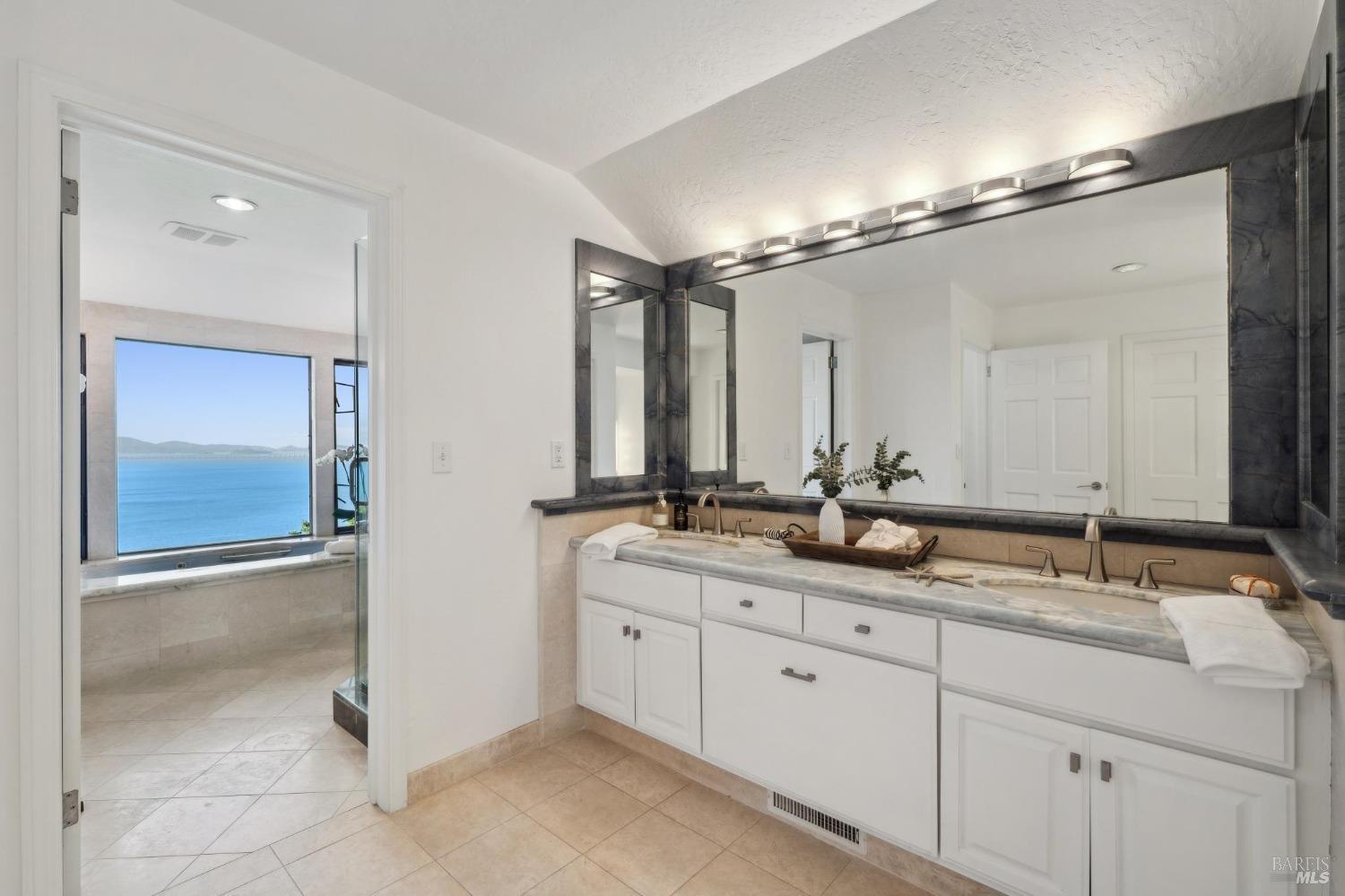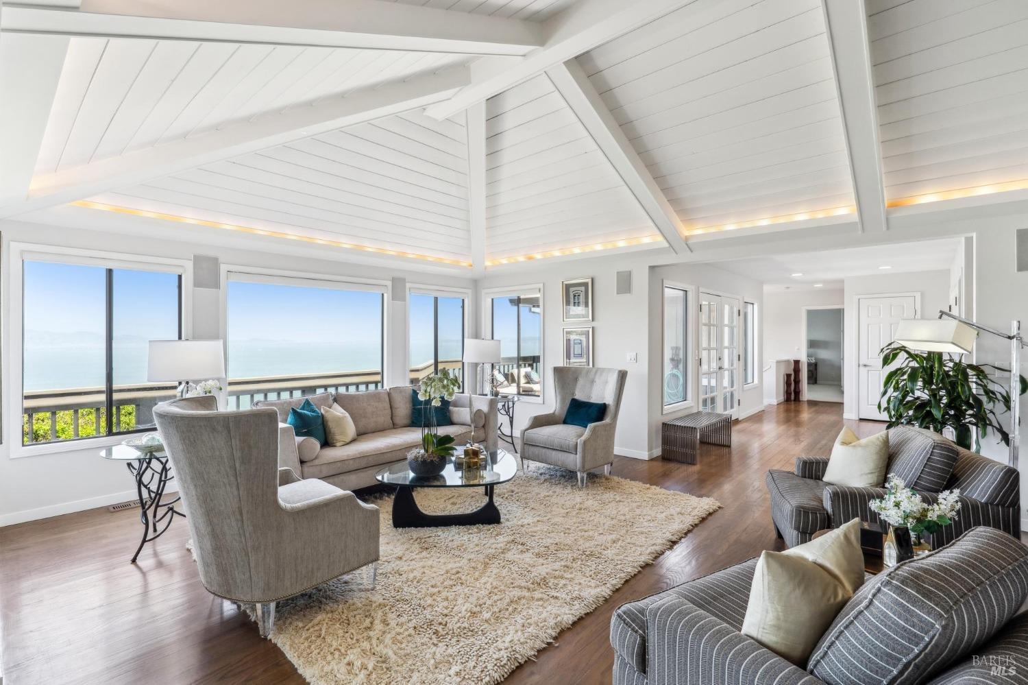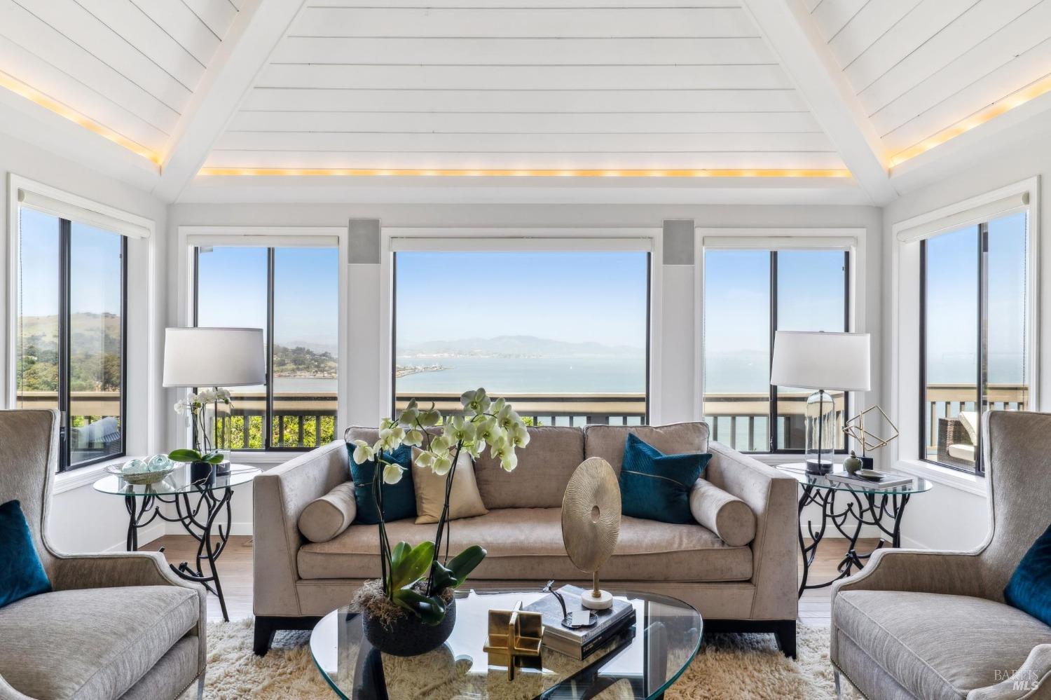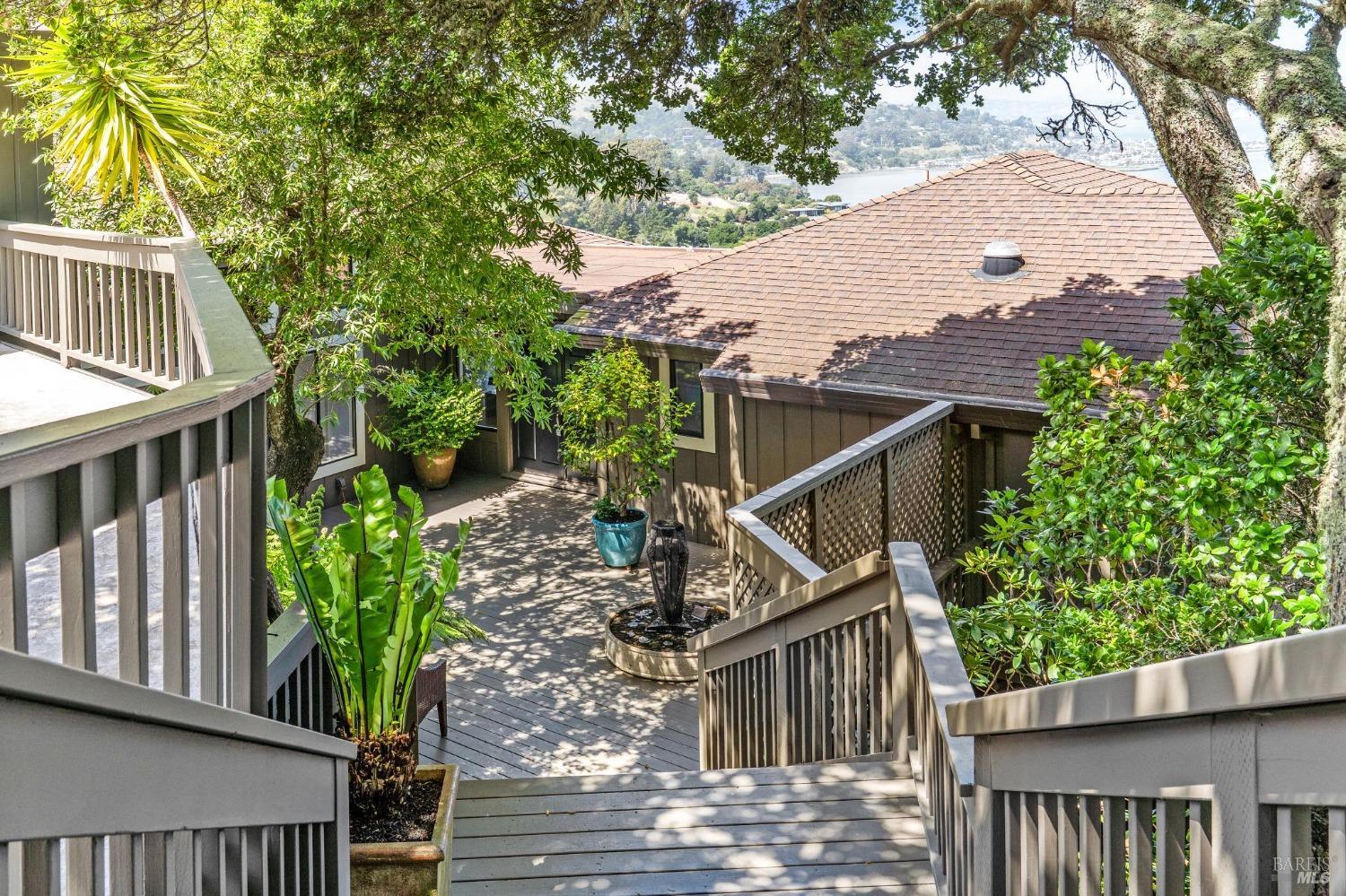 NEW PRICE! Experience luxurious coastal living in this stunning 4-bedroom, 3.5-bath home with mesmerizing water views. Every detail of this home has been thoughtfully curated to offer a lifestyle of comfort, sophistication & breathtaking beauty. The combined kitchen/family room offers vaulted ceilings w/ cove lighting, exotic fish aquarium, built-in library & media cabinetry, gas river-rock fireplace & sliding glass doors leading to the entry deck. Kitchen has 2 new stainless-steel ovens, new refrigerator, Viking gas stove w/ range hood and island w/ bar seating for casual dining. Living room & formal dining area open to a generous deck for indoor/outdoor flow. A stone gas fireplace in the living room provides cozy comfort on chilly days. Elegant primary suite with generous bedroom, large walk-in closet, private ensuite office, bathroom with marble counters, 2 sinks, separate vanity, shower stall w/ 2 heads & jetted tub overlooking the views. Downstairs: 2 more large bedrooms, hallway bath & 4th bedroom w/ ensuite bath & separate outside entrance. Sparkling resistance pool w/ waterfall fountains, jetted spa & interior/exterior sound system. 2-car attached garage + add'l pk. 2 storage areas + wine storage. $9,099 of HOA dues is for upcoming road maintenanc