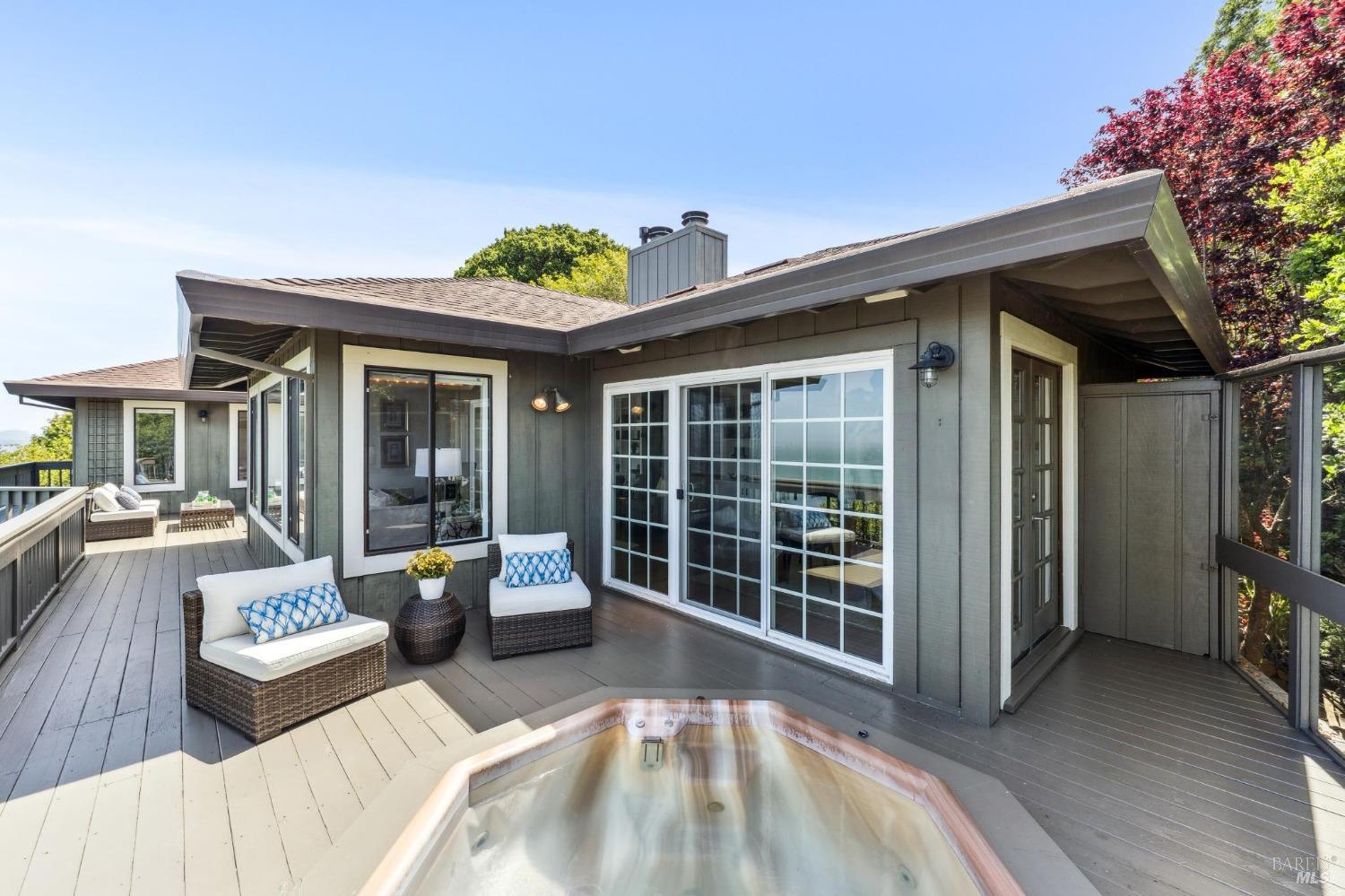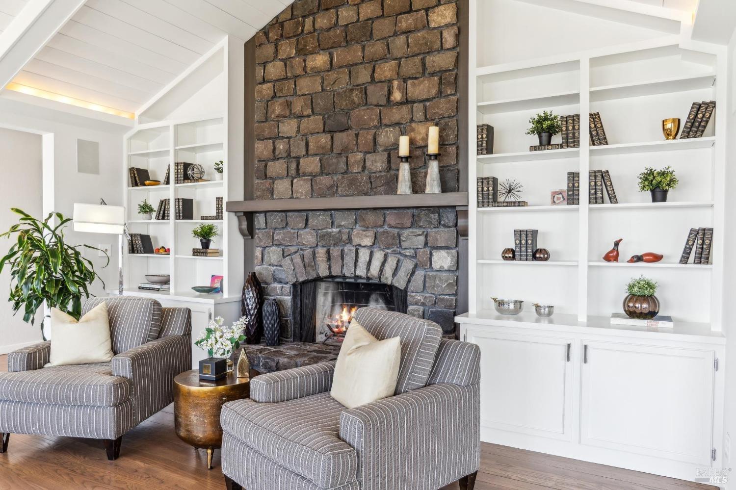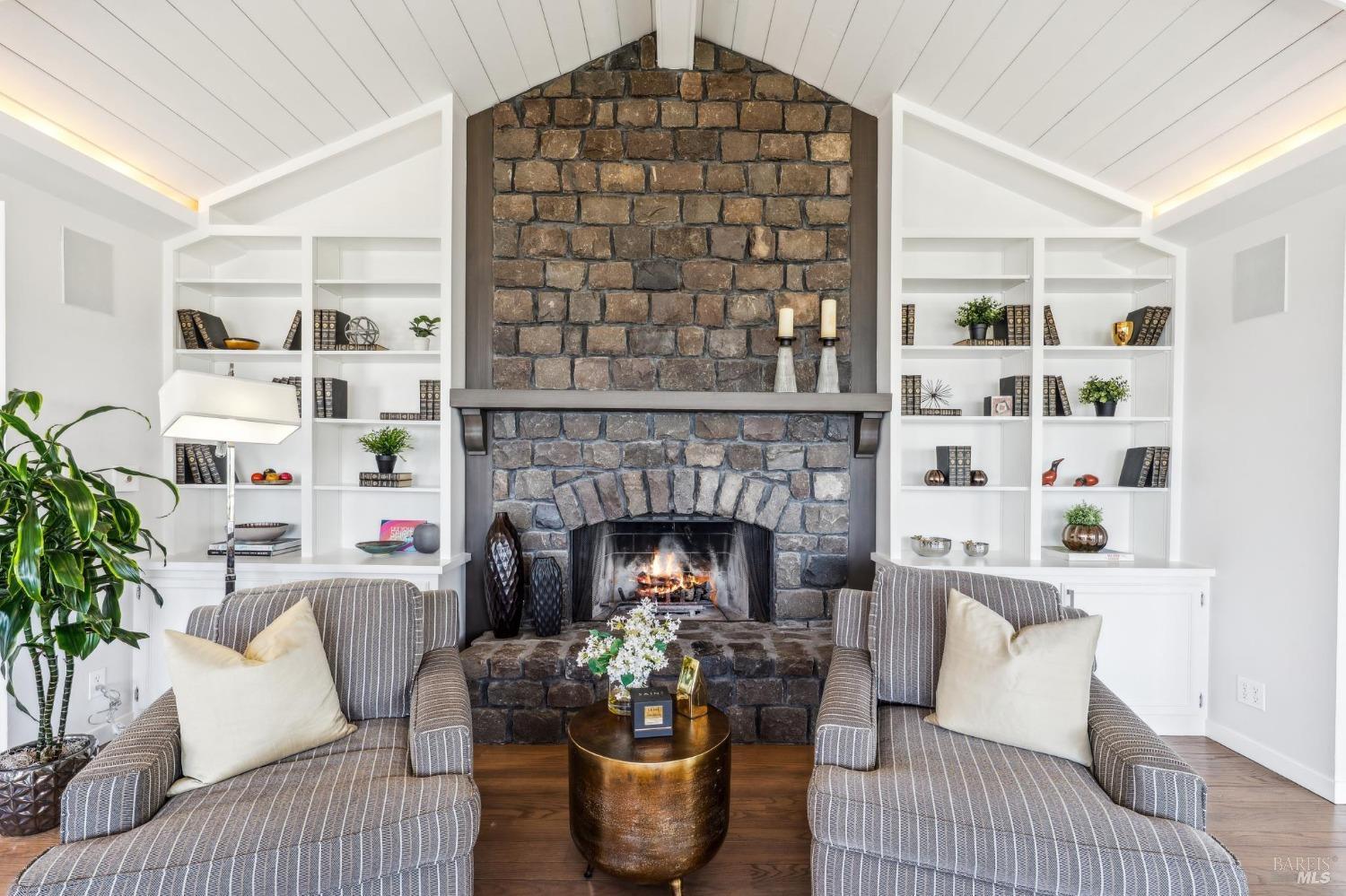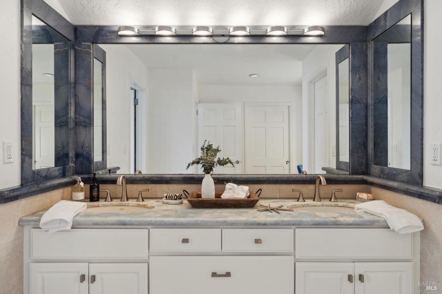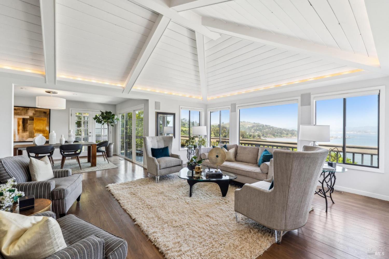 NEW PRICE! Experience luxurious coastal living in this stunning 4-bedroom, 3.5-bath home with mesmerizing water views. Every detail of this home has been thoughtfully curated to offer a lifestyle of comfort, sophistication & breathtaking beauty. The combined kitchen/family room offers vaulted ceilings w/ cove lighting, exotic fish aquarium, built-in library & media cabinetry, gas river-rock fireplace & sliding glass doors leading to the entry deck. Kitchen has 2 new stainless-steel ovens, new refrigerator, Viking gas stove w/ range hood and island w/ bar seating for casual dining. Living room & formal dining area open to a generous deck for indoor/outdoor flow. A stone gas fireplace in the living room provides cozy comfort on chilly days. Elegant primary suite with generous bedroom, large walk-in closet, private ensuite office, bathroom with marble counters, 2 sinks, separate vanity, shower stall w/ 2 heads & jetted tub overlooking the views. Downstairs: 2 more large bedrooms, hallway bath & 4th bedroom w/ ensuite bath & separate outside entrance. Sparkling resistance pool w/ waterfall fountains, jetted spa & interior/exterior sound system. 2-car attached garage + add'l pk. 2 storage areas + wine storage. $9,099 of HOA dues is for upcoming road maintenanc