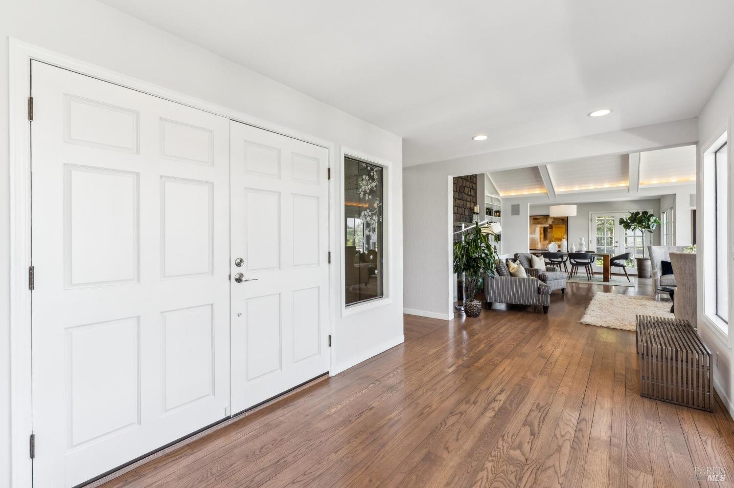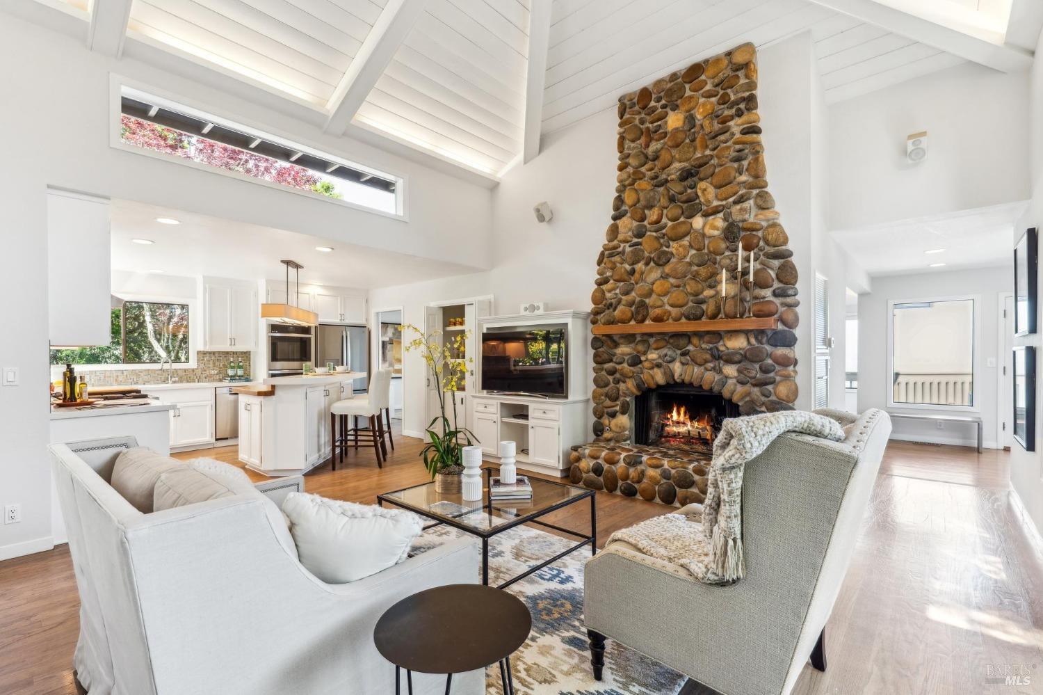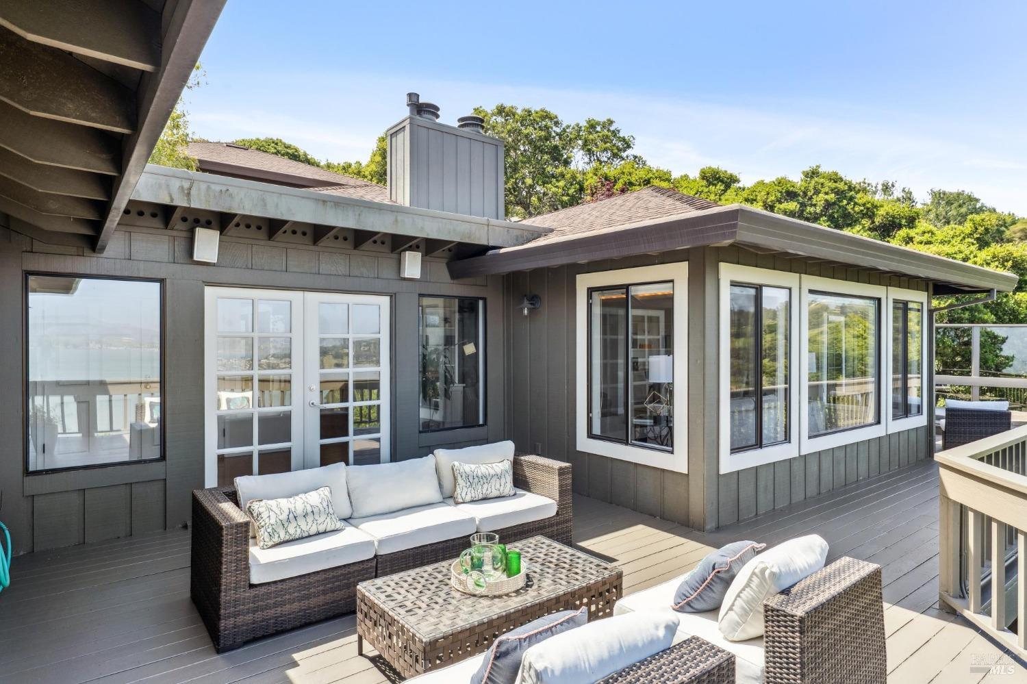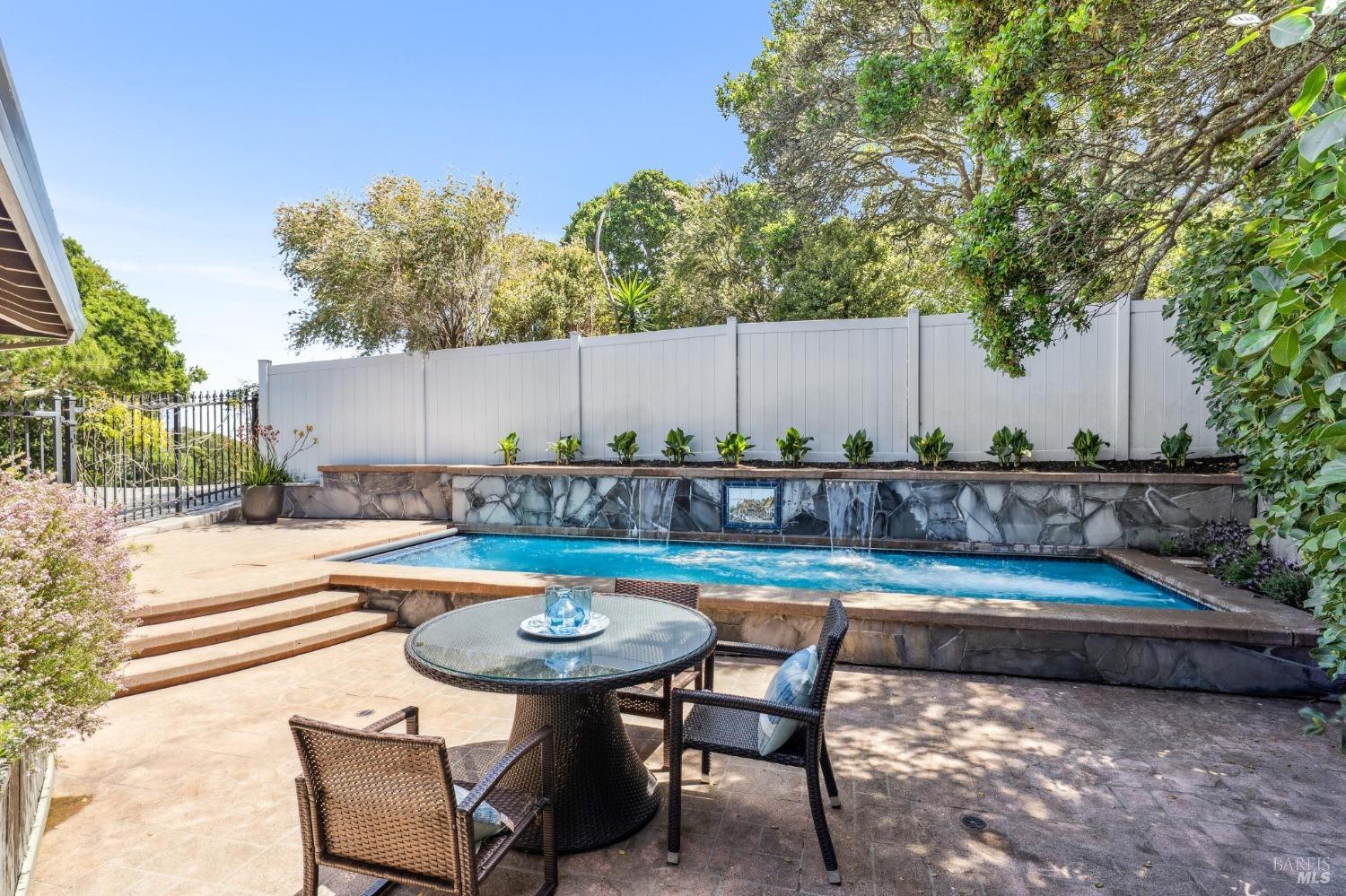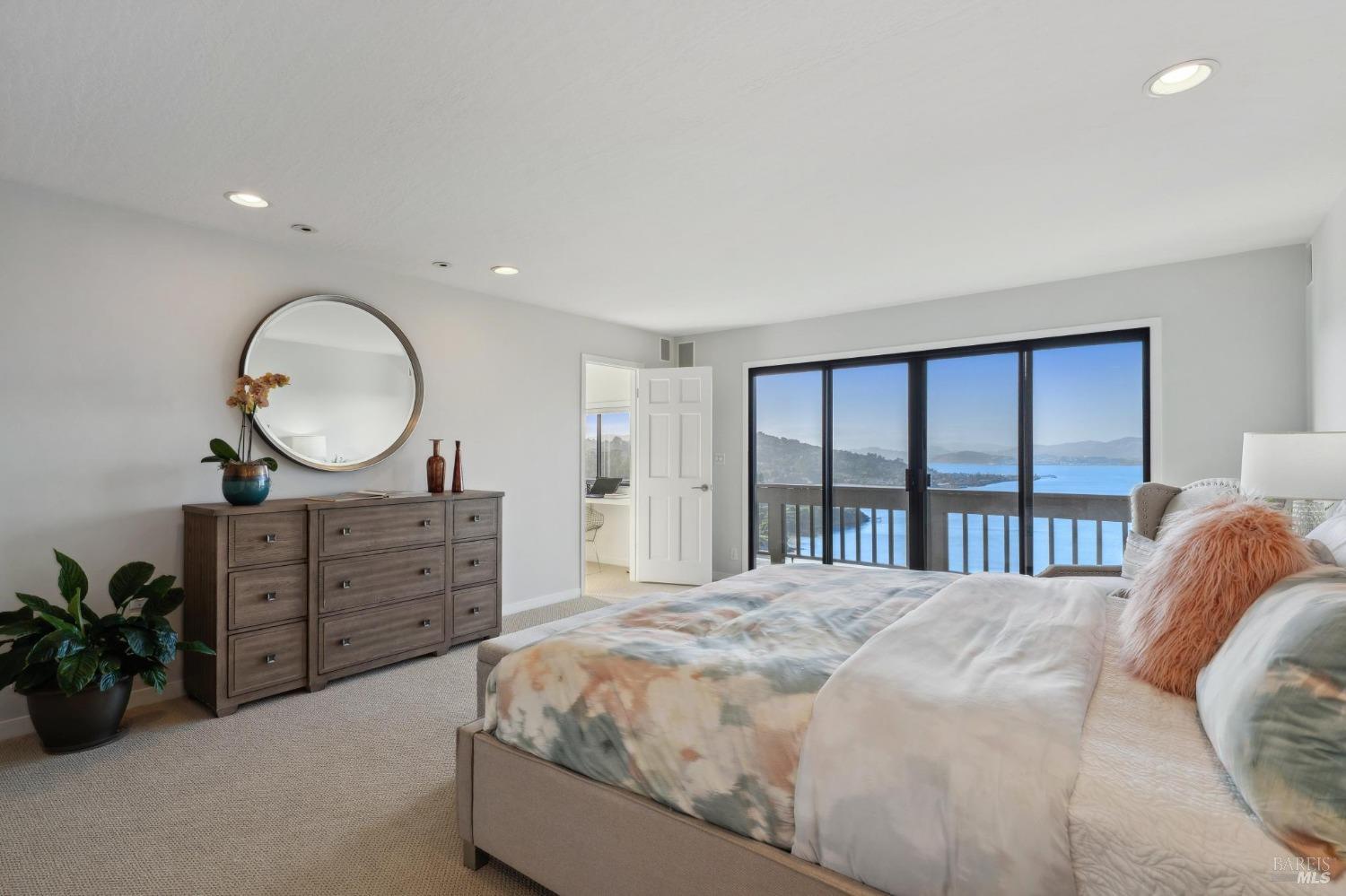 NEW PRICE! Experience luxurious coastal living in this stunning 4-bedroom, 3.5-bath home with mesmerizing water views. Every detail of this home has been thoughtfully curated to offer a lifestyle of comfort, sophistication & breathtaking beauty. The combined kitchen/family room offers vaulted ceilings w/ cove lighting, exotic fish aquarium, built-in library & media cabinetry, gas river-rock fireplace & sliding glass doors leading to the entry deck. Kitchen has 2 new stainless-steel ovens, new refrigerator, Viking gas stove w/ range hood and island w/ bar seating for casual dining. Living room & formal dining area open to a generous deck for indoor/outdoor flow. A stone gas fireplace in the living room provides cozy comfort on chilly days. Elegant primary suite with generous bedroom, large walk-in closet, private ensuite office, bathroom with marble counters, 2 sinks, separate vanity, shower stall w/ 2 heads & jetted tub overlooking the views. Downstairs: 2 more large bedrooms, hallway bath & 4th bedroom w/ ensuite bath & separate outside entrance. Sparkling resistance pool w/ waterfall fountains, jetted spa & interior/exterior sound system. 2-car attached garage + add'l pk. 2 storage areas + wine storage. $9,099 of HOA dues is for upcoming road maintenanc