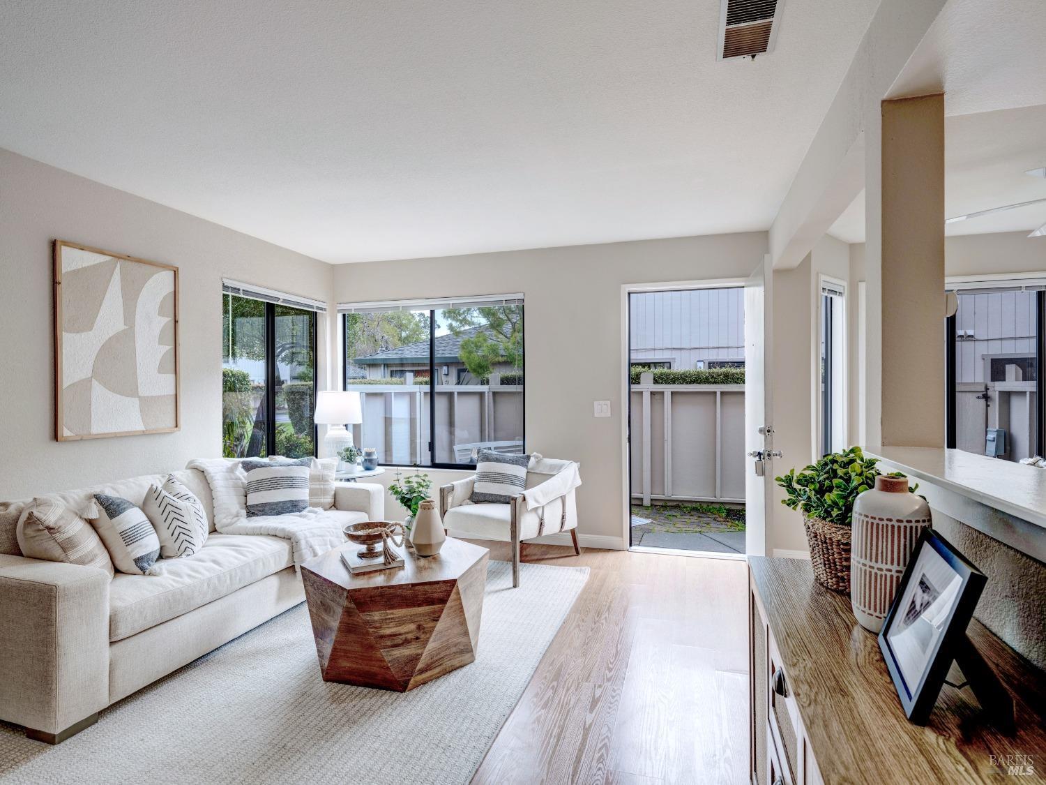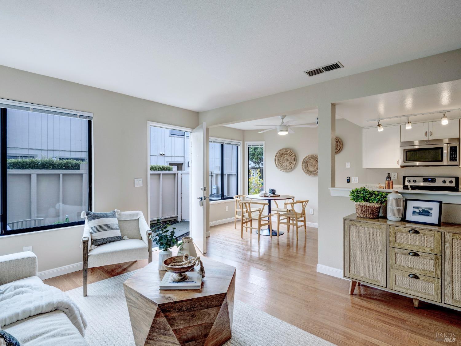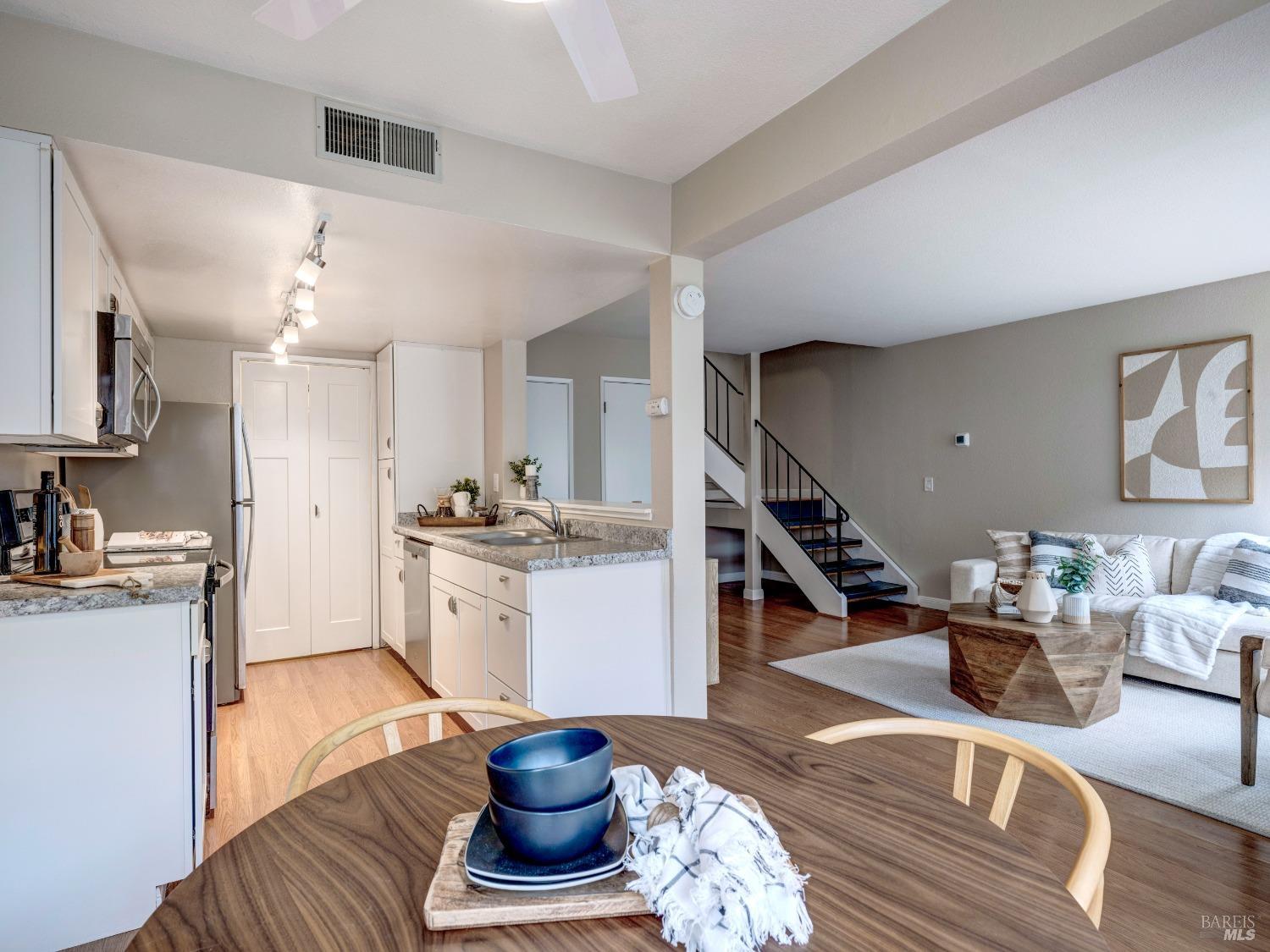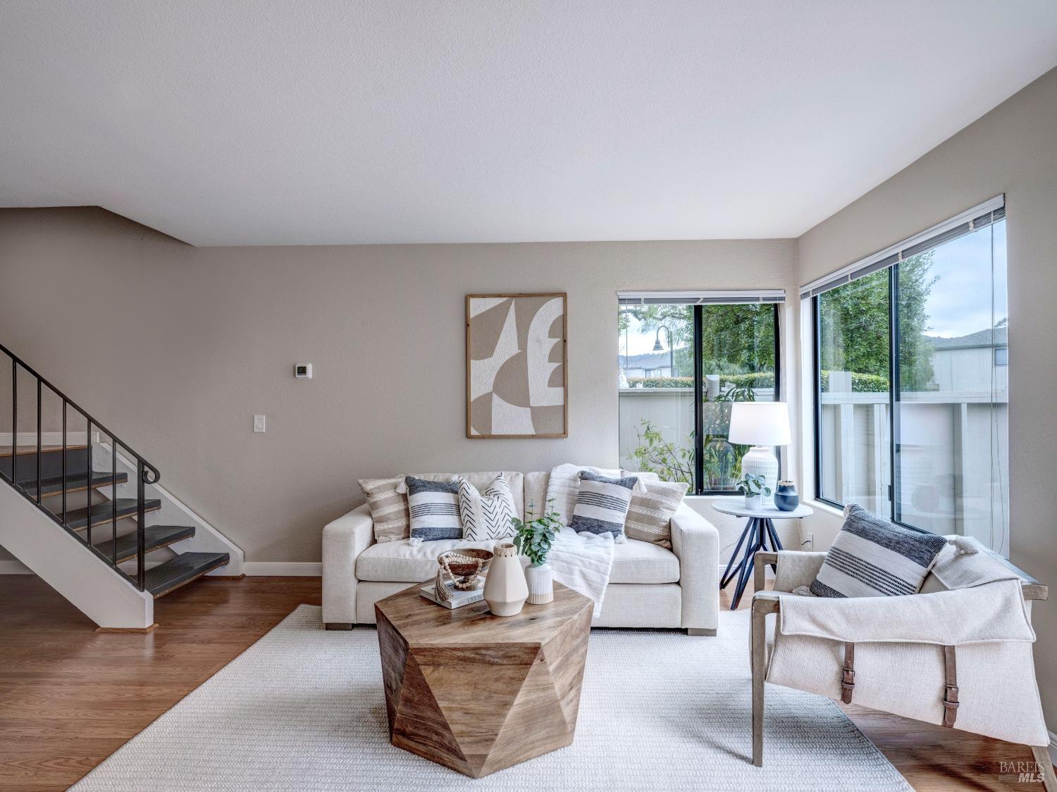 Well maintained and rarely available townhouse-style two-bedroom unit in the sought after Miller Creek school district. This lovely home in Captain's Cove has an inviting front patio which is gated for private use. The main level has an ample living room, a full-sized dining area and an updated kitchen. Upstairs are 2 light filled bedrooms and a nicely updated bathroom. There is an in-unit laundry closet, rarely found central air, a 1-car carport with a storage closet and 2nd tandem outdoor parking space. The HOA features a community pool and guest parking. The property is very well located to public transportation, restaurants, trails, and a public golf facility.