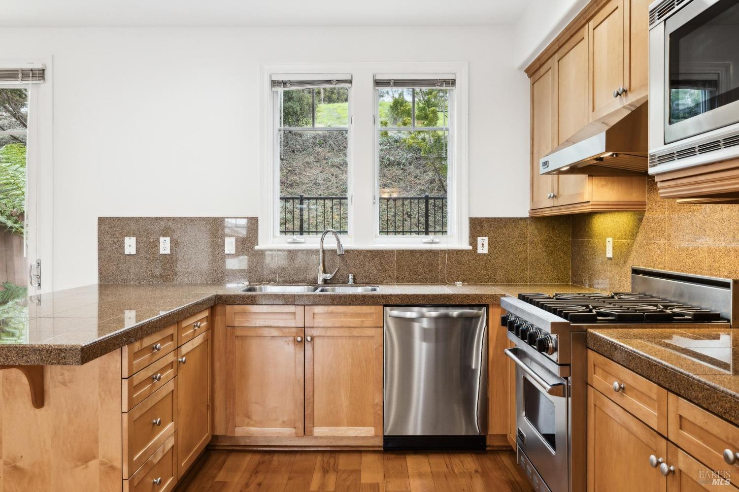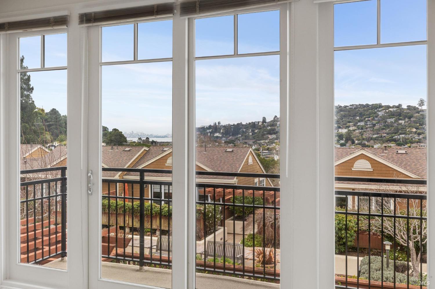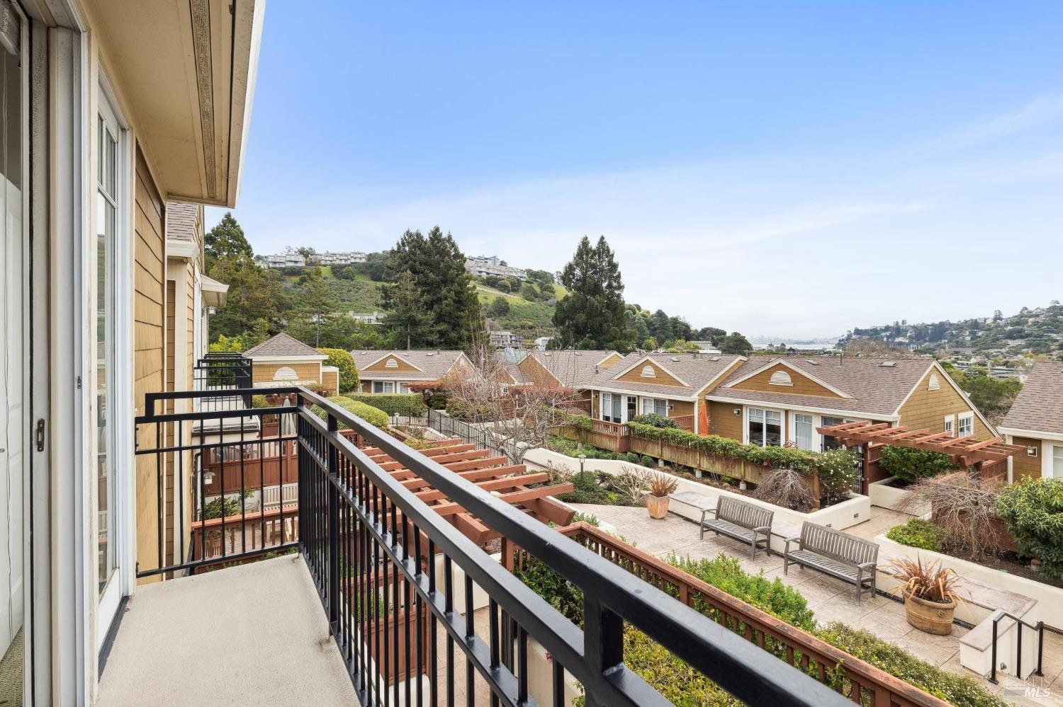 This light-filled, rarely available 2-level townhome condo in Tiburon's desirable Chandler's Gate adult community offers 2 bedrooms w/ ensuite baths, an additional half bath, a combo dining/living/kitchen area, two private patios and a gas fireplace for cozy comfort. The gourmet kitchen offers high-end S/S appliances including a Viking stove, Subzero refrigerator & gleaming granite counters. The sunny, generous primary suite offers a luxurious marble bathroom with a walk-in closet and sweeping views from the Tiburon Hills over the SF skyline, Belvedere Island, Sausalito & Richardson Bay. Other features include an in-unit laundry room with washer & dryer, 2-car deeded parking in a gated garage and an interior elevator with a hard-wired phone line serving both floors straight from the garage. Easy access to the shops & restaurants of downtown Tiburon, commuter ferries, tennis & sailing clubs and the Old Rail Trail walking & bike path. *One resident must be 62 or older.