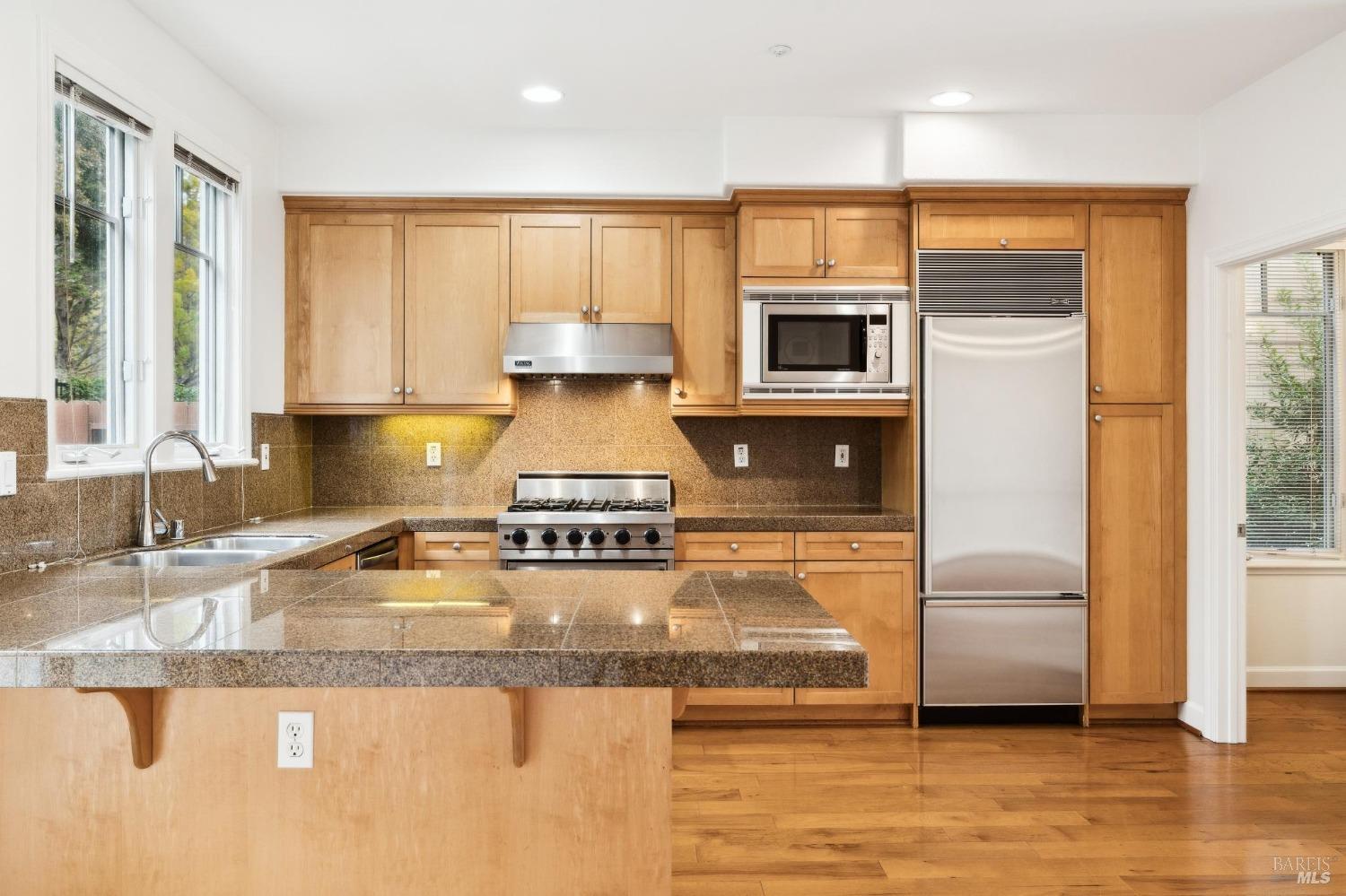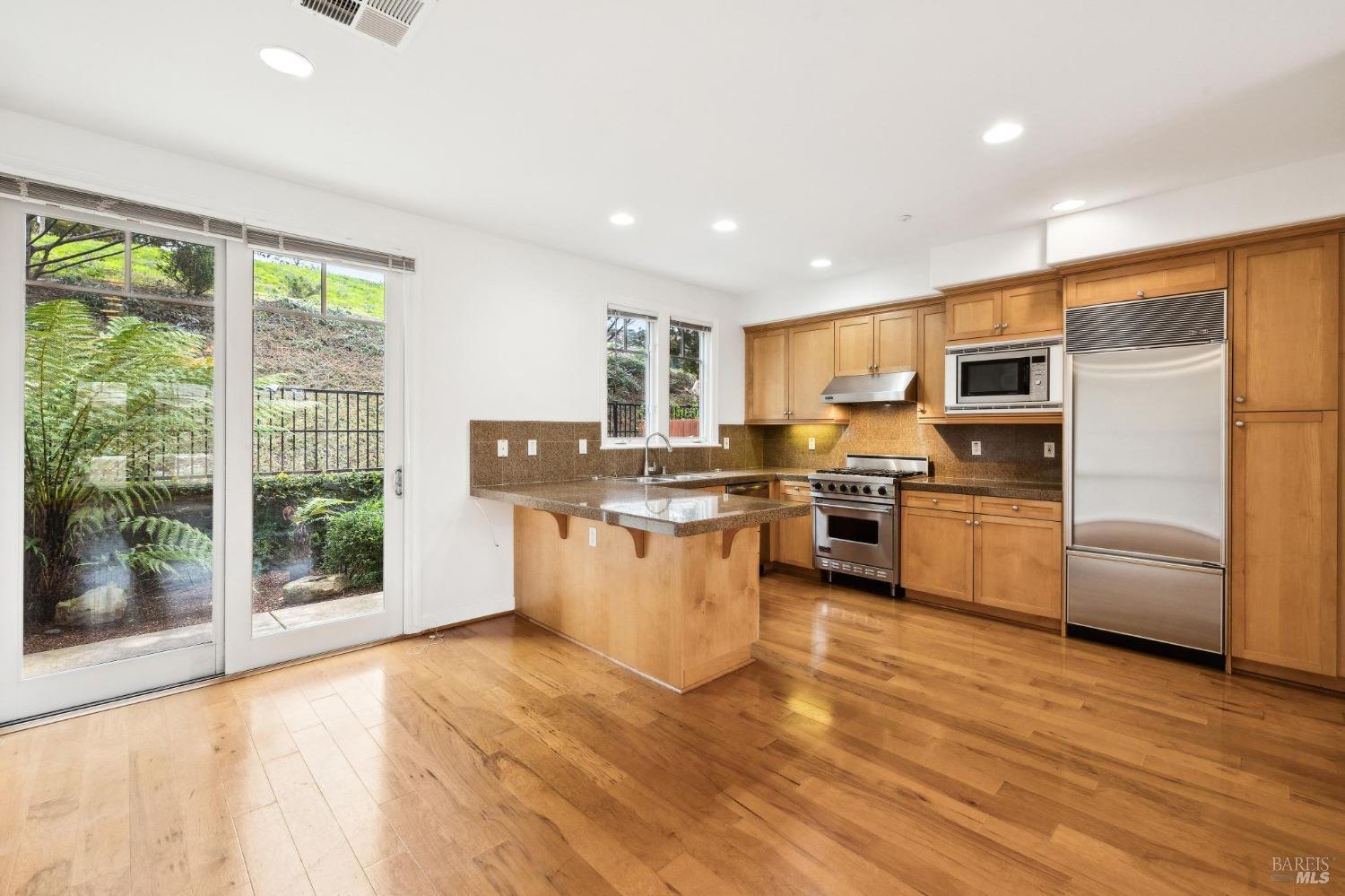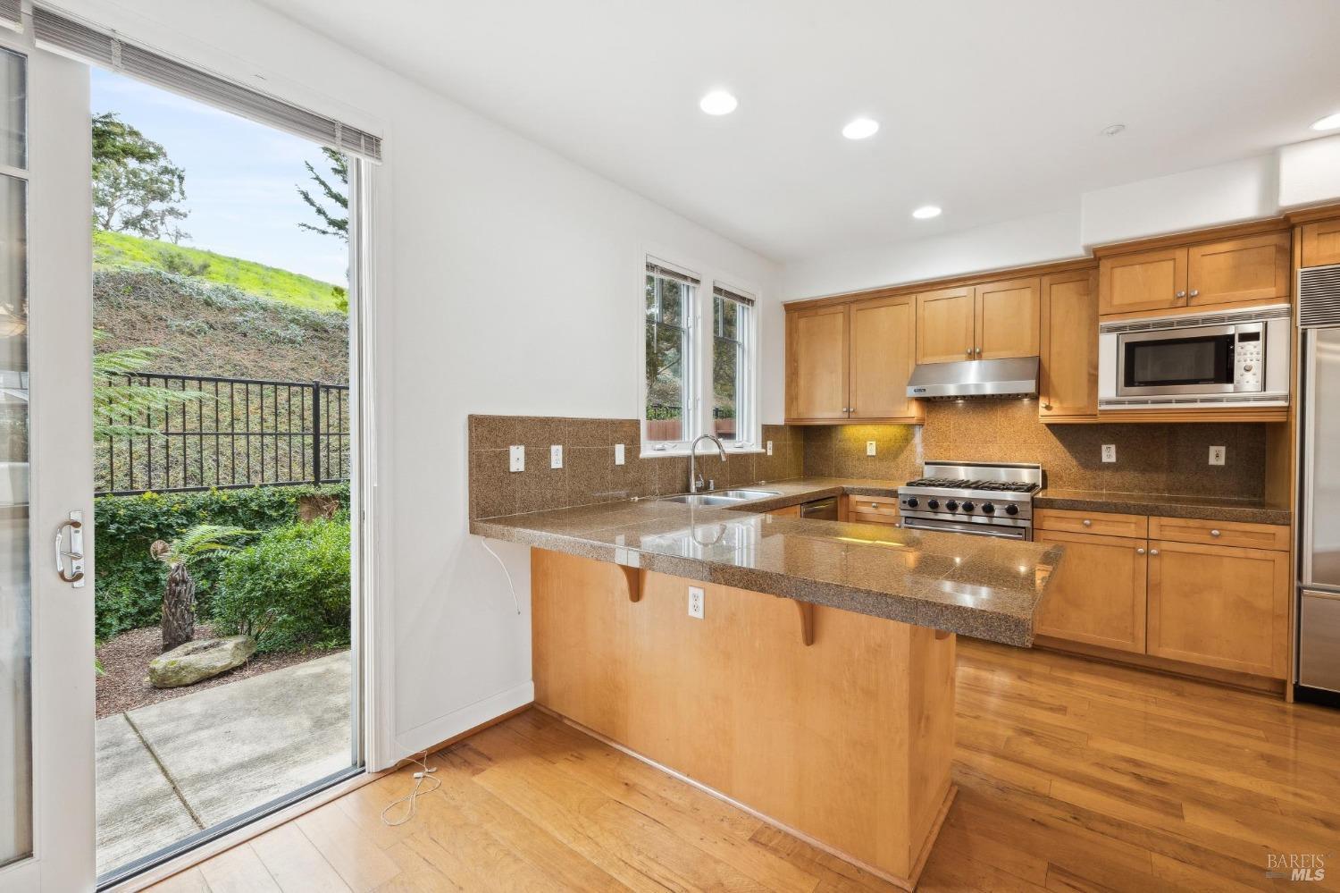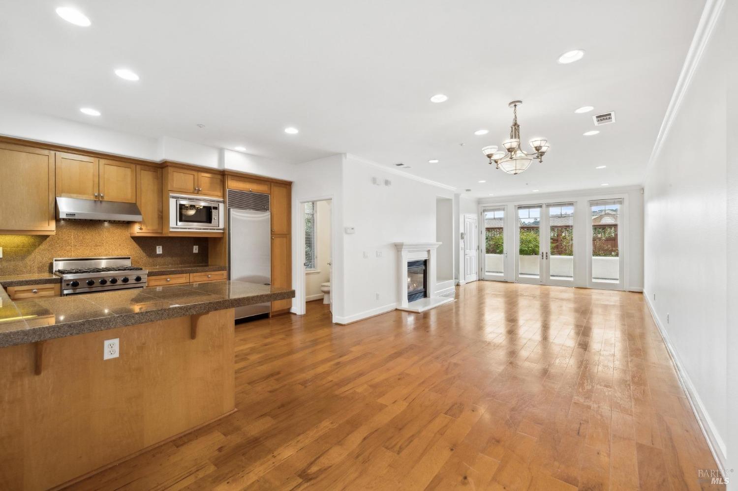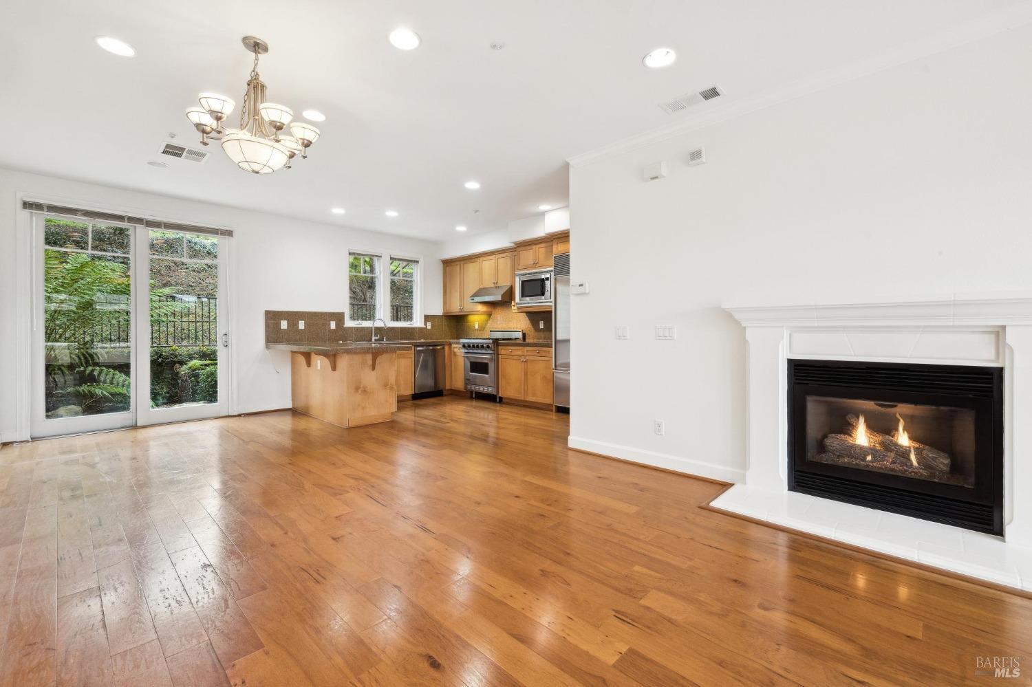 This light-filled, rarely available 2-level townhome condo in Tiburon's desirable Chandler's Gate adult community offers 2 bedrooms with ensuite baths, an additional half bath, a combo dining/living/kitchen area, two private patios and a gas fireplace for cozy comfort. The gourmet kitchen offers high-end S/S appliances including a Viking stove, Subzero refrigerator & gleaming granite counters. The sunny, generous primary suite offers a luxurious marble bathroom with a walk-in closet and sweeping views from the Tiburon Hills over the SF skyline, Belvedere Island, Sausalito & Richardson Bay. Other features include an in-unit laundry room with washer & dryer, 2-car deeded parking in a gated garage and an interior elevator with a hard-wired phone line serving both floors straight from the garage. Easy access to the shops & restaurants of downtown Tiburon, commuter ferries, tennis & sailing clubs and the Old Rail Trail walking & bike path. *One resident must be 62 or older.