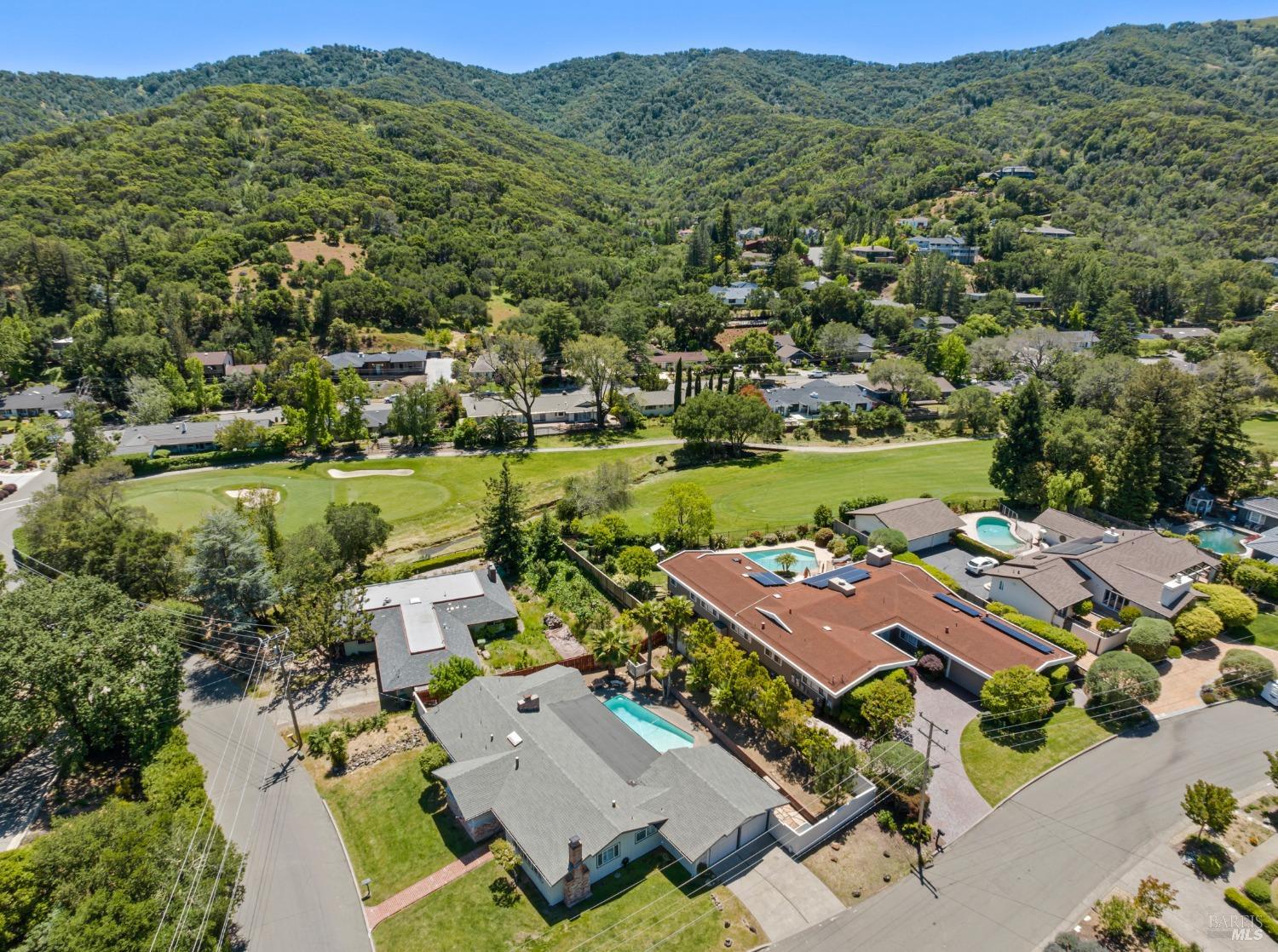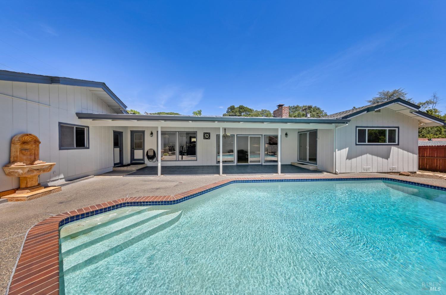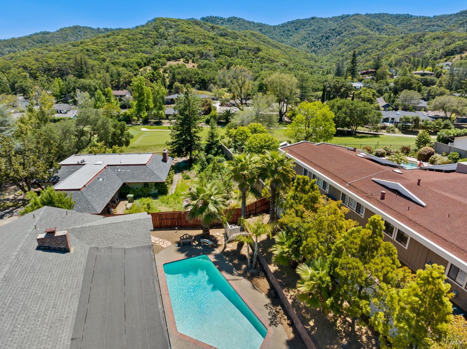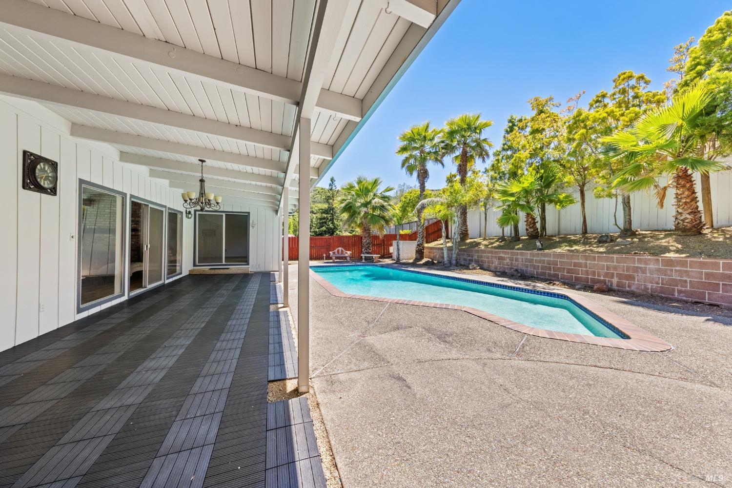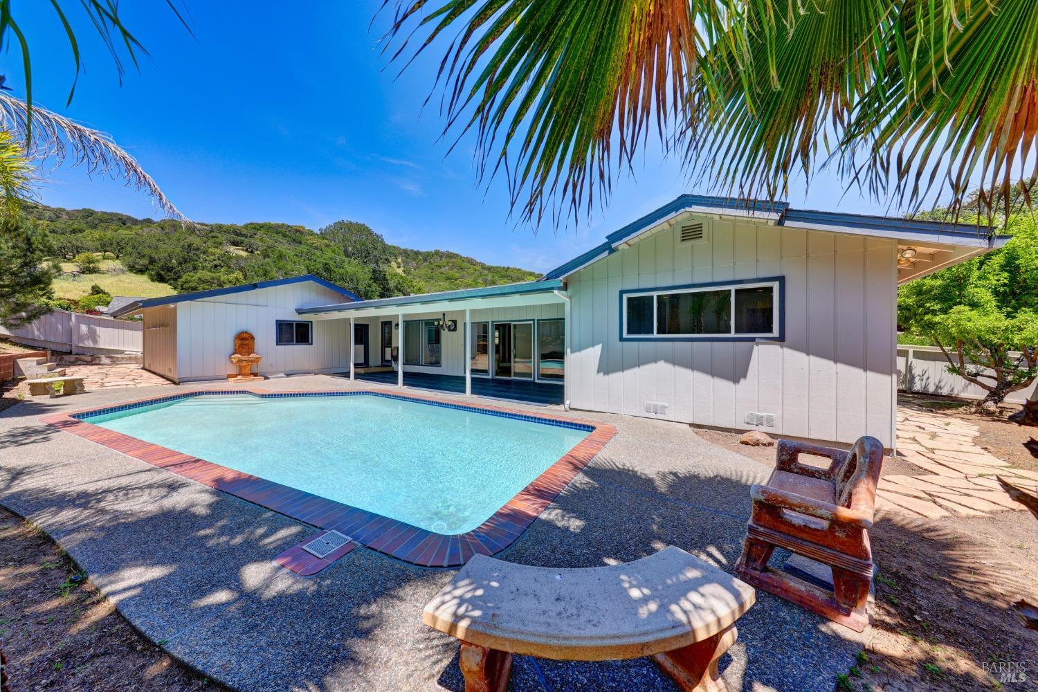 This single-level beautiful home with a very inviting backyard pool sits on over 1/3 acre in the heart of Marin Country Club Estates. Spacious and with an easily accessible floor plan, the home offers 3 bedrooms, 2 bathrooms, formal dining and living rooms, a gourmet kitchen opening to a generous family room and an oversized 2-car garage. Two wood-burning fireplaces, one in the living room and one in the family room, offer cozy comfort on cool days. Enjoy beautiful views of the surrounding hills and country club. Located on a corner lot with palm and fruit trees in the fenced-in private backyard and a large wraparound front lawn for an easy-to-manage manicured landscape.