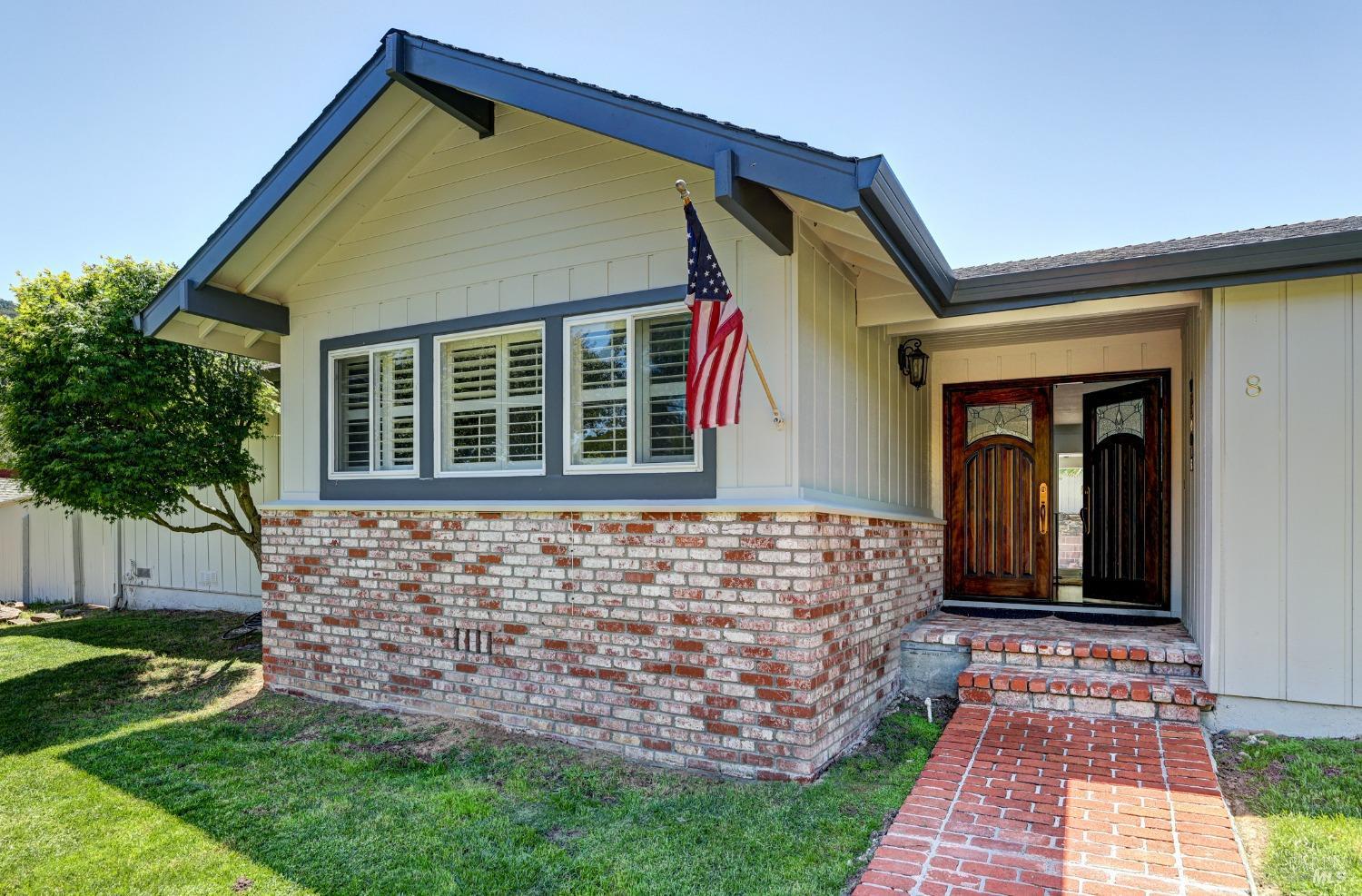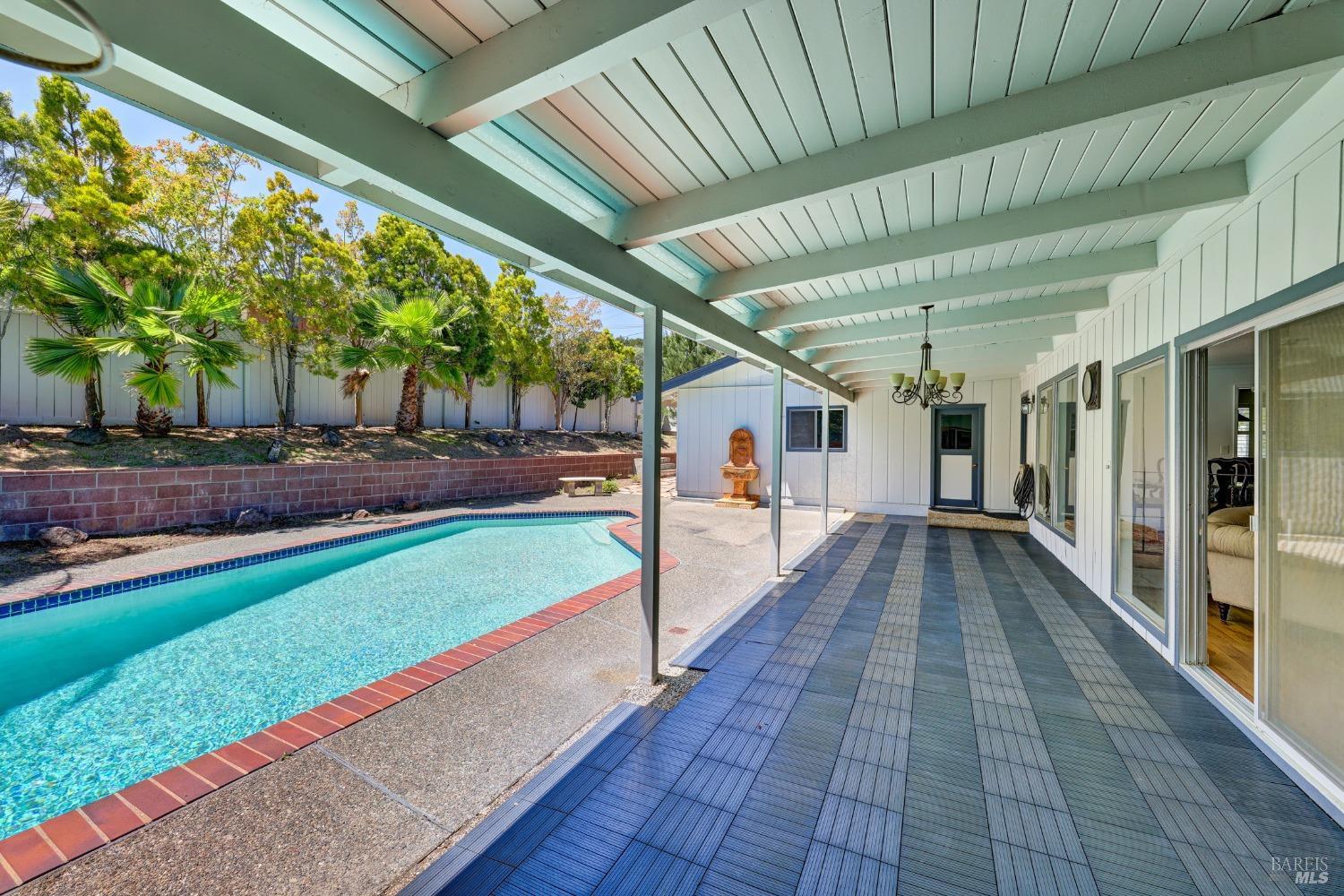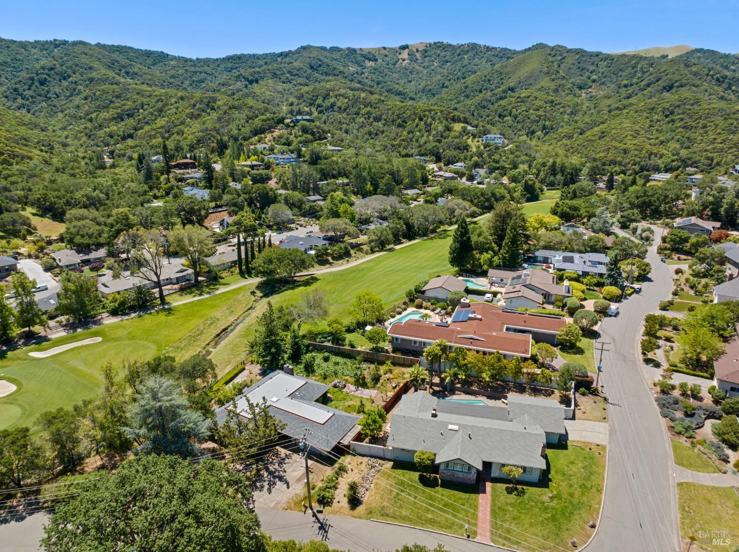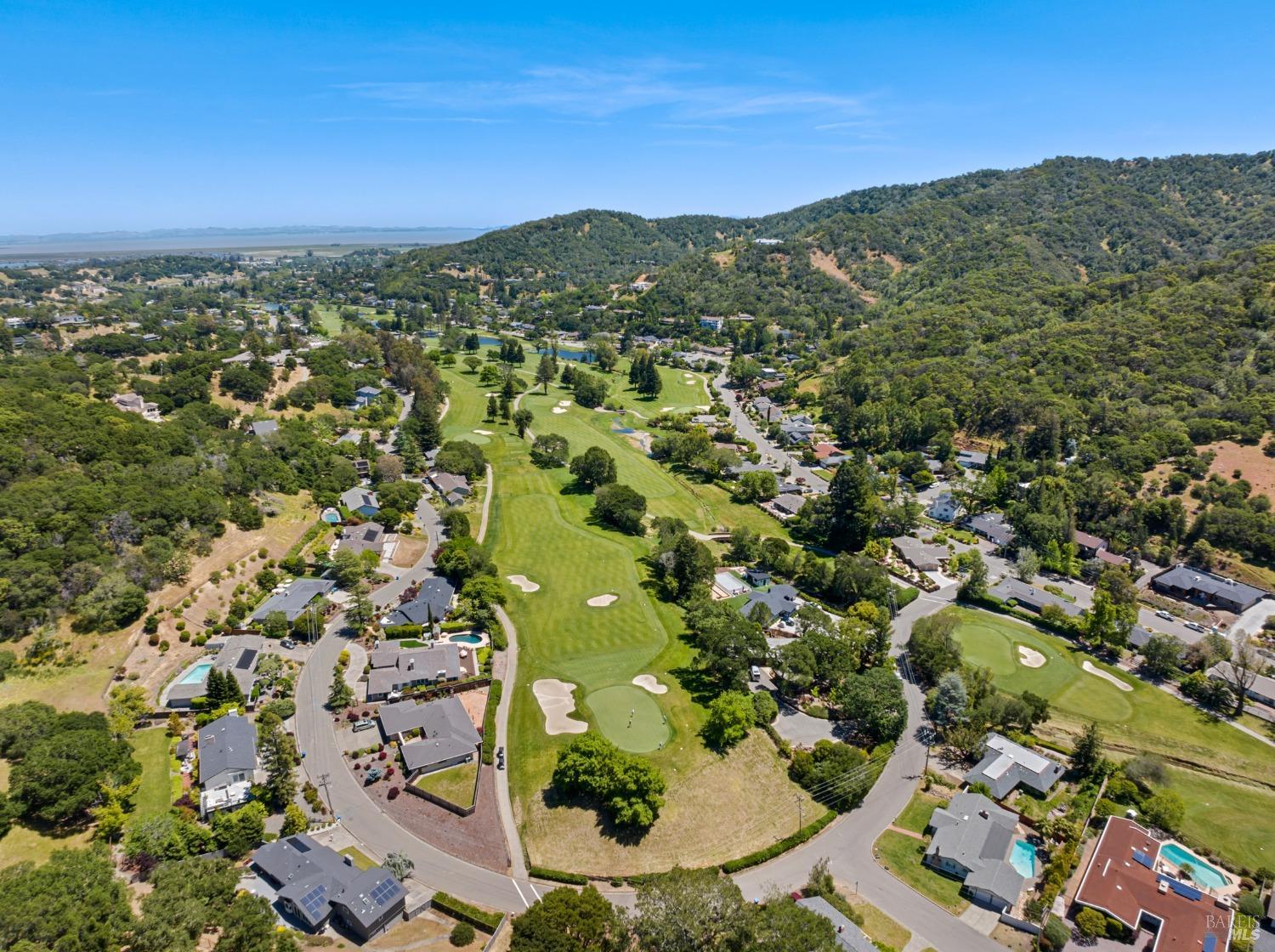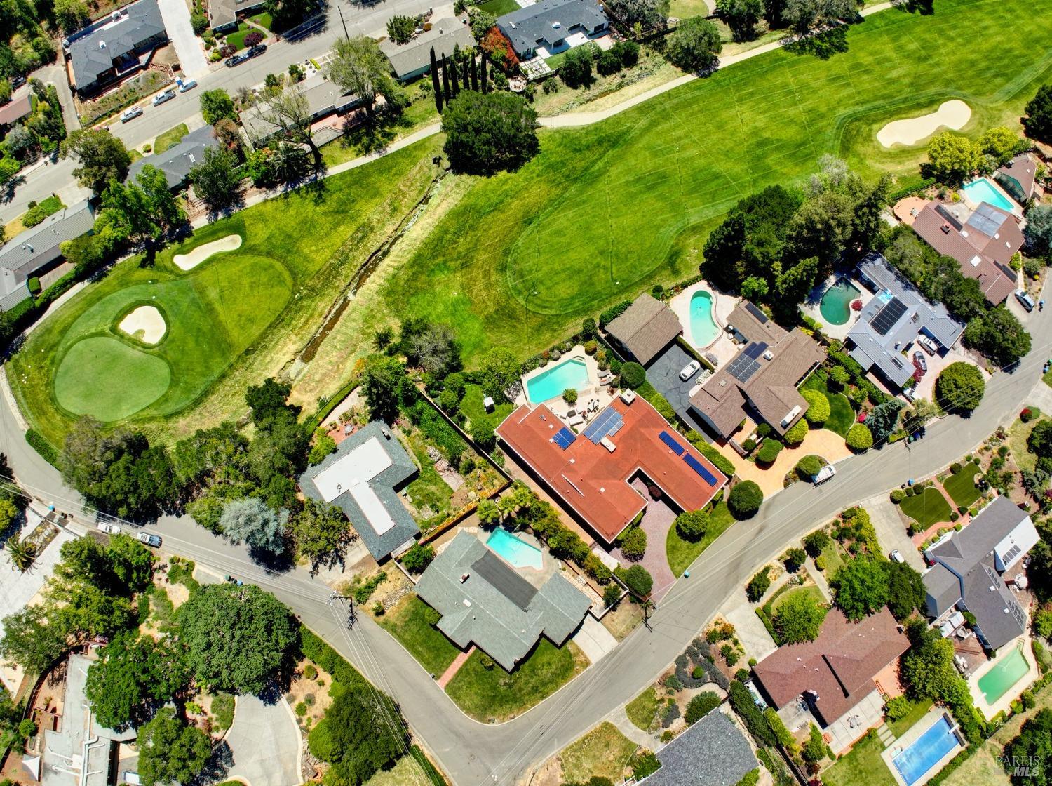 This single-level beautiful home with a very inviting backyard pool sits on over 1/3 acre in the heart of Marin Country Club Estates. Spacious and with an easily accessible floor plan, the home offers 3 bedrooms, 2 bathrooms, formal dining and living rooms, a gourmet kitchen opening to a generous family room and an oversized 2-car garage. Two wood-burning fireplaces, one in the living room and one in the family room, offer cozy comfort on cool days. Enjoy beautiful views of the surrounding hills and country club. Located on a corner lot with palm and fruit trees in the fenced-in private backyard and a large wraparound front lawn for an easy-to-manage manicured landscape.