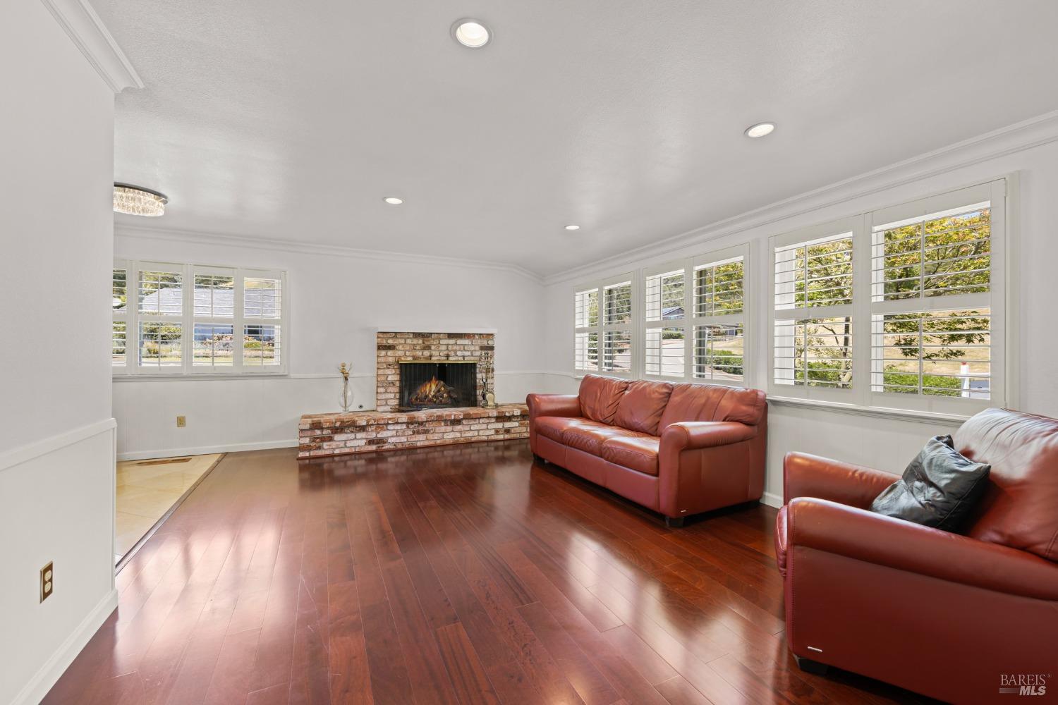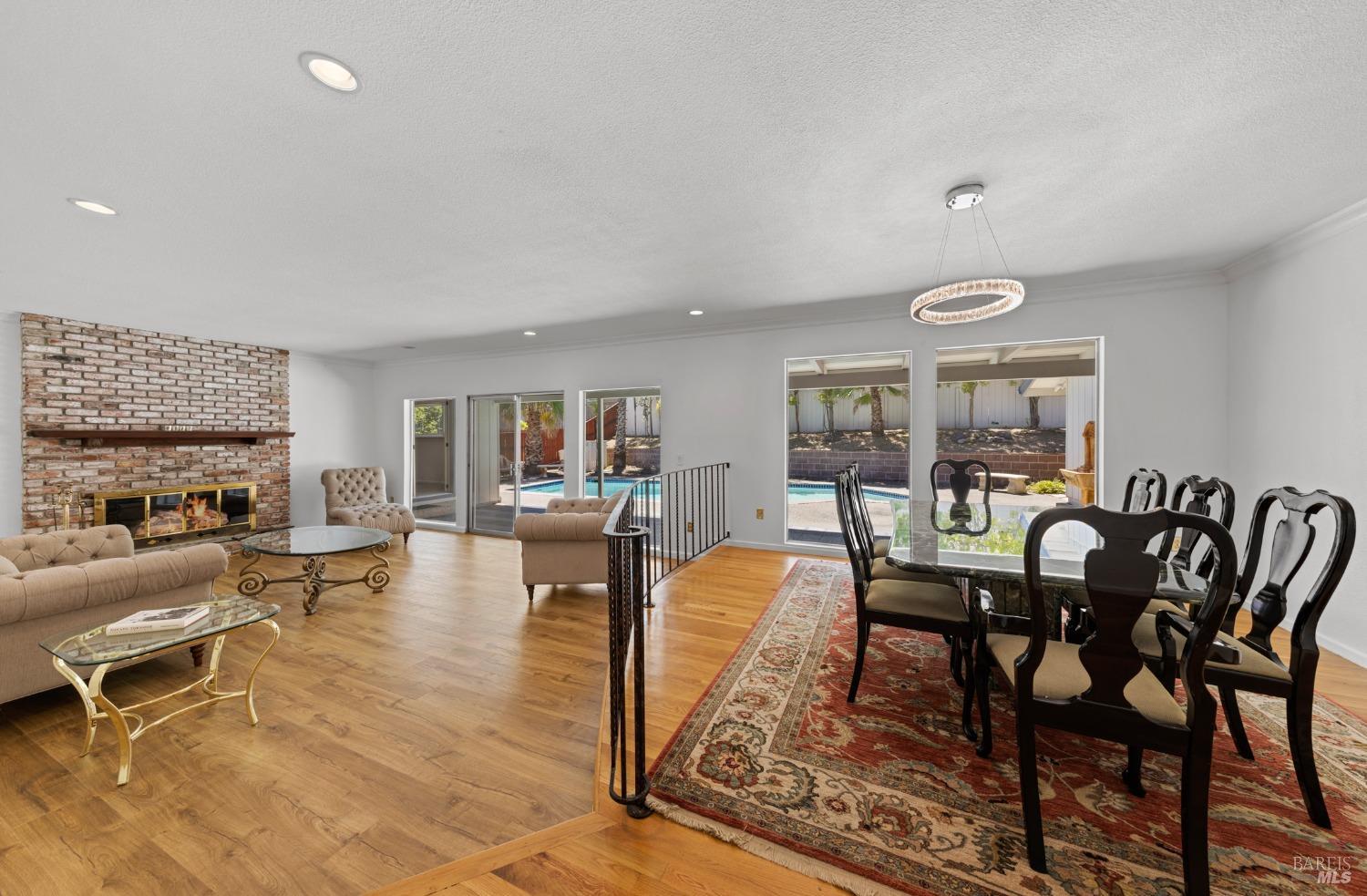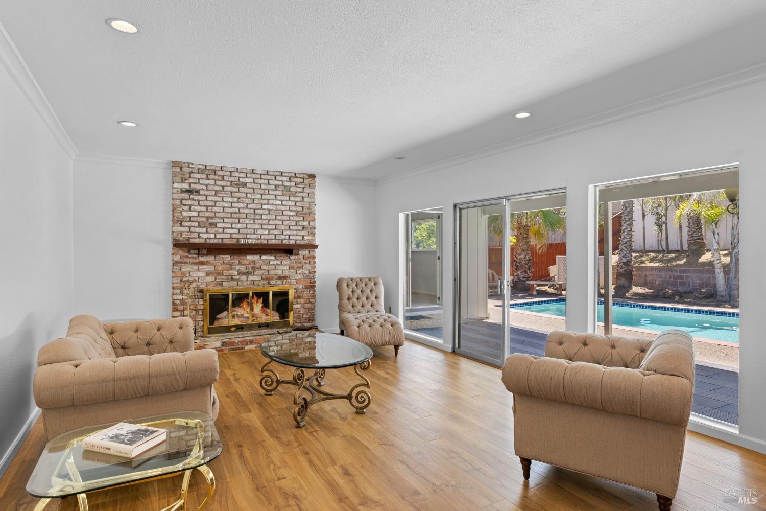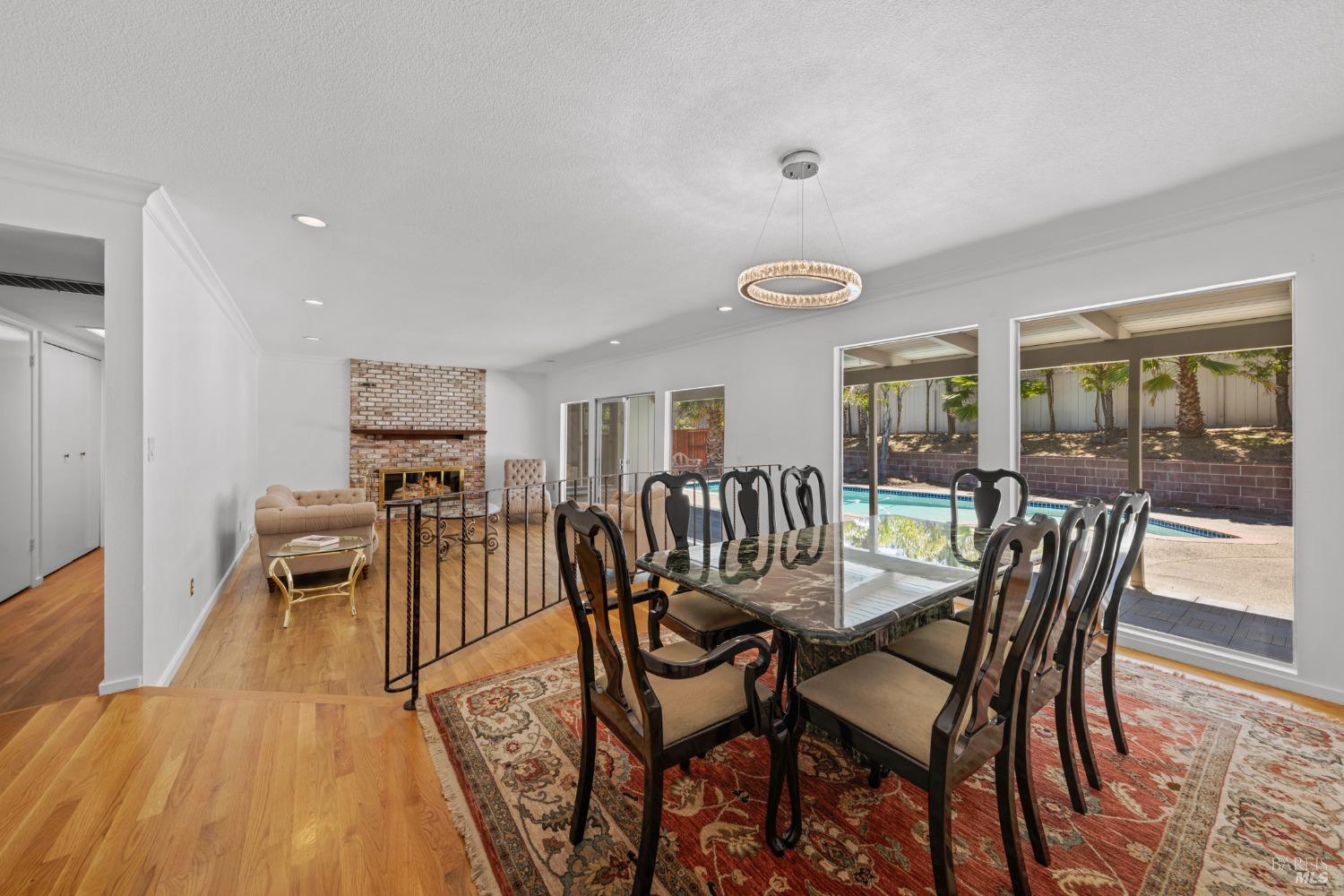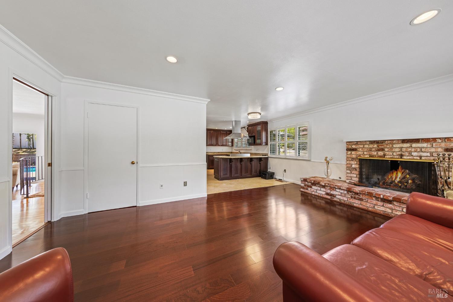 This single-level beautiful home with a very inviting backyard pool sits on over 1/3 acre in the heart of Marin Country Club Estates. Spacious and with an easily accessible floor plan, the home offers 3 bedrooms, 2 bathrooms, formal dining and living rooms, a gourmet kitchen opening to a generous family room and an oversized 2-car garage. Two wood-burning fireplaces, one in the living room and one in the family room, offer cozy comfort on cool days. Enjoy beautiful views of the surrounding hills and country club. Located on a corner lot with palm and fruit trees in the fenced-in private backyard and a large wraparound front lawn for an easy-to-manage manicured landscape.