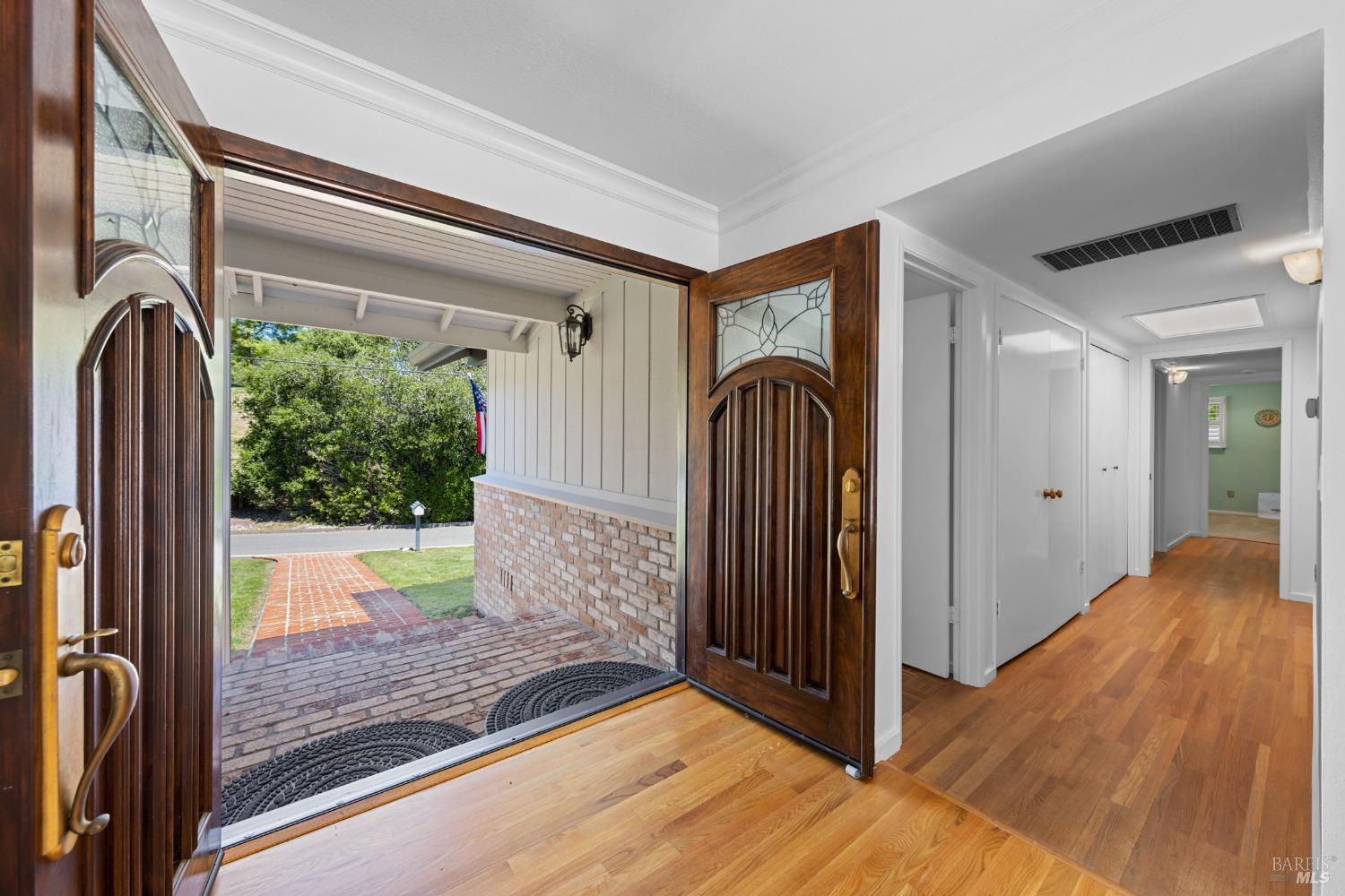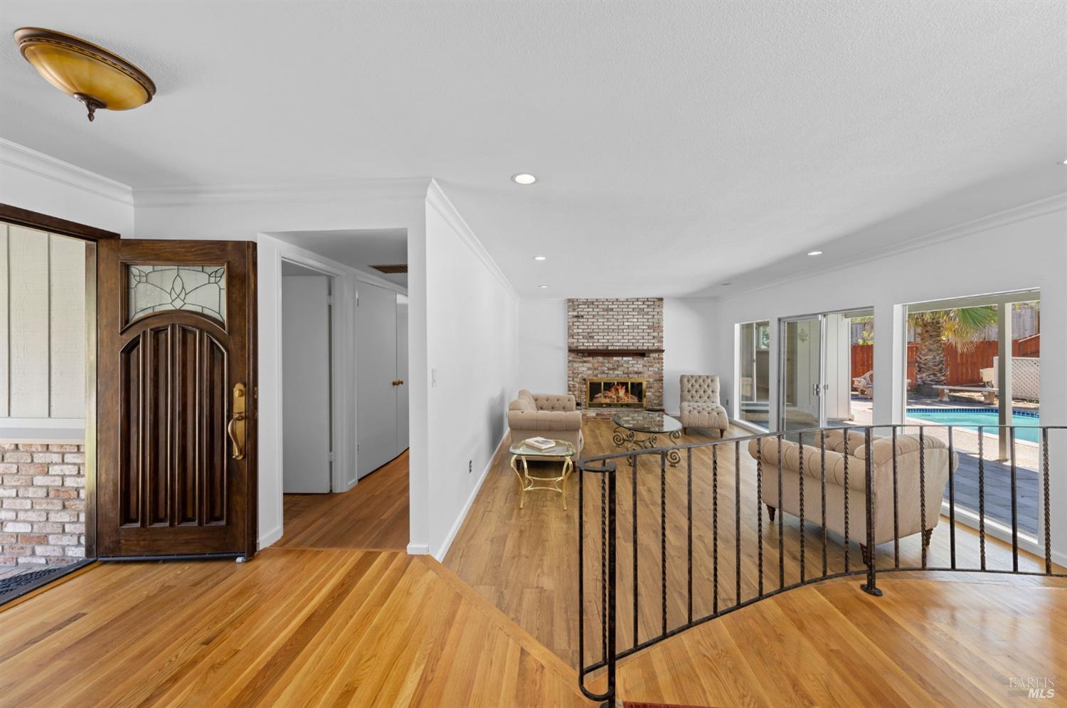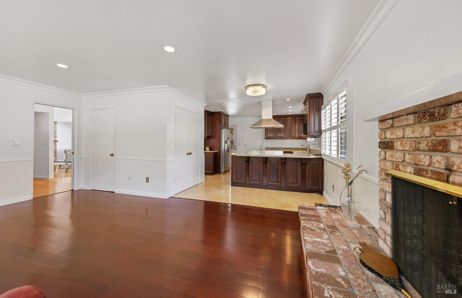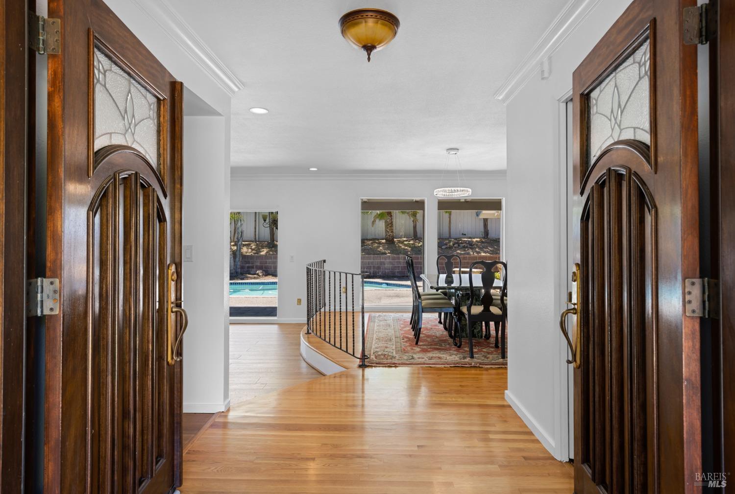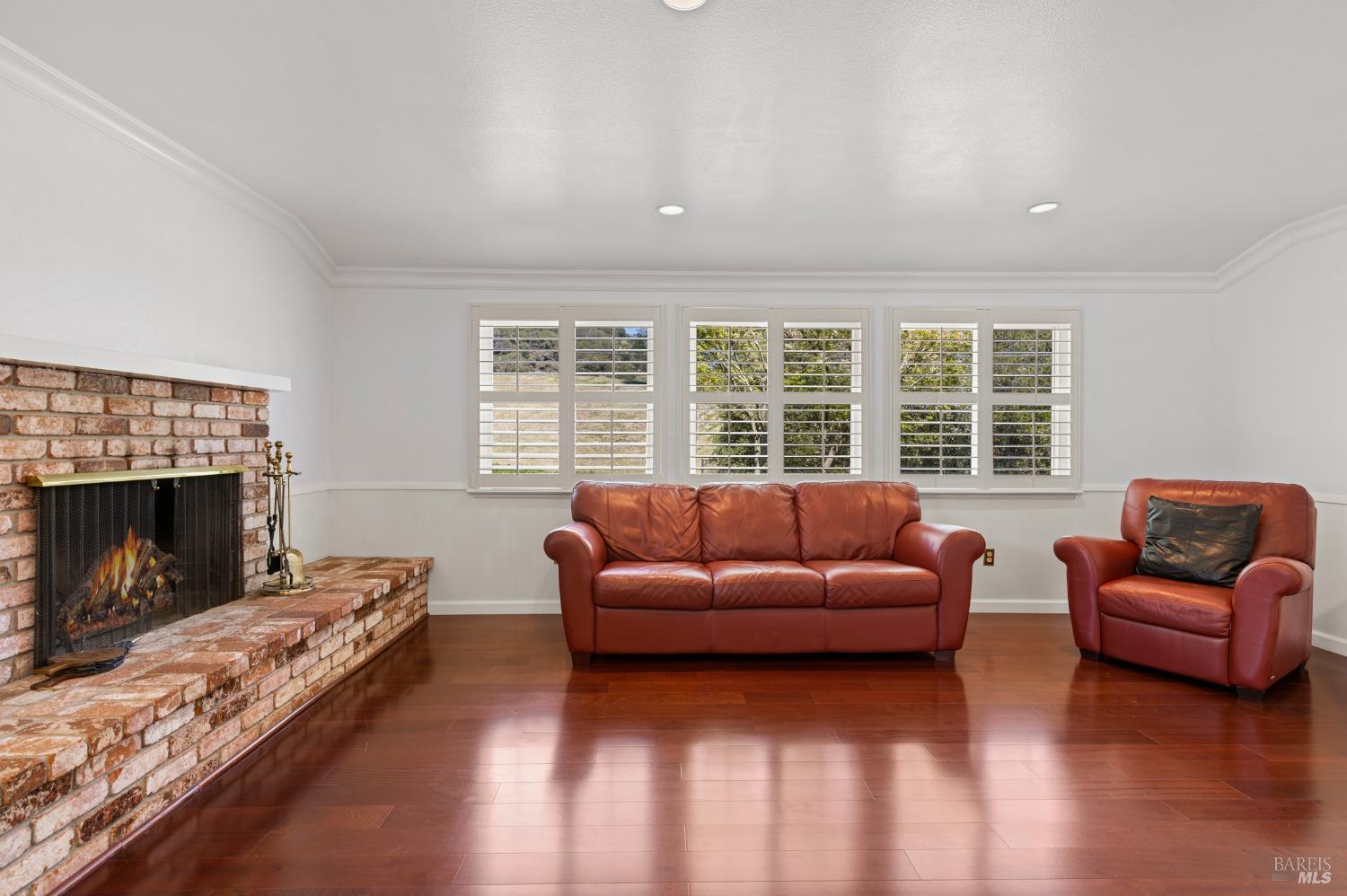 This single-level beautiful home with a very inviting backyard pool sits on over 1/3 acre in the heart of Marin Country Club Estates. Spacious and with an easily accessible floor plan, the home offers 3 bedrooms, 2 bathrooms, formal dining and living rooms, a gourmet kitchen opening to a generous family room and an oversized 2-car garage. Two wood-burning fireplaces, one in the living room and one in the family room, offer cozy comfort on cool days. Enjoy beautiful views of the surrounding hills and country club. Located on a corner lot with palm and fruit trees in the fenced-in private backyard and a large wraparound front lawn for an easy-to-manage manicured landscape.